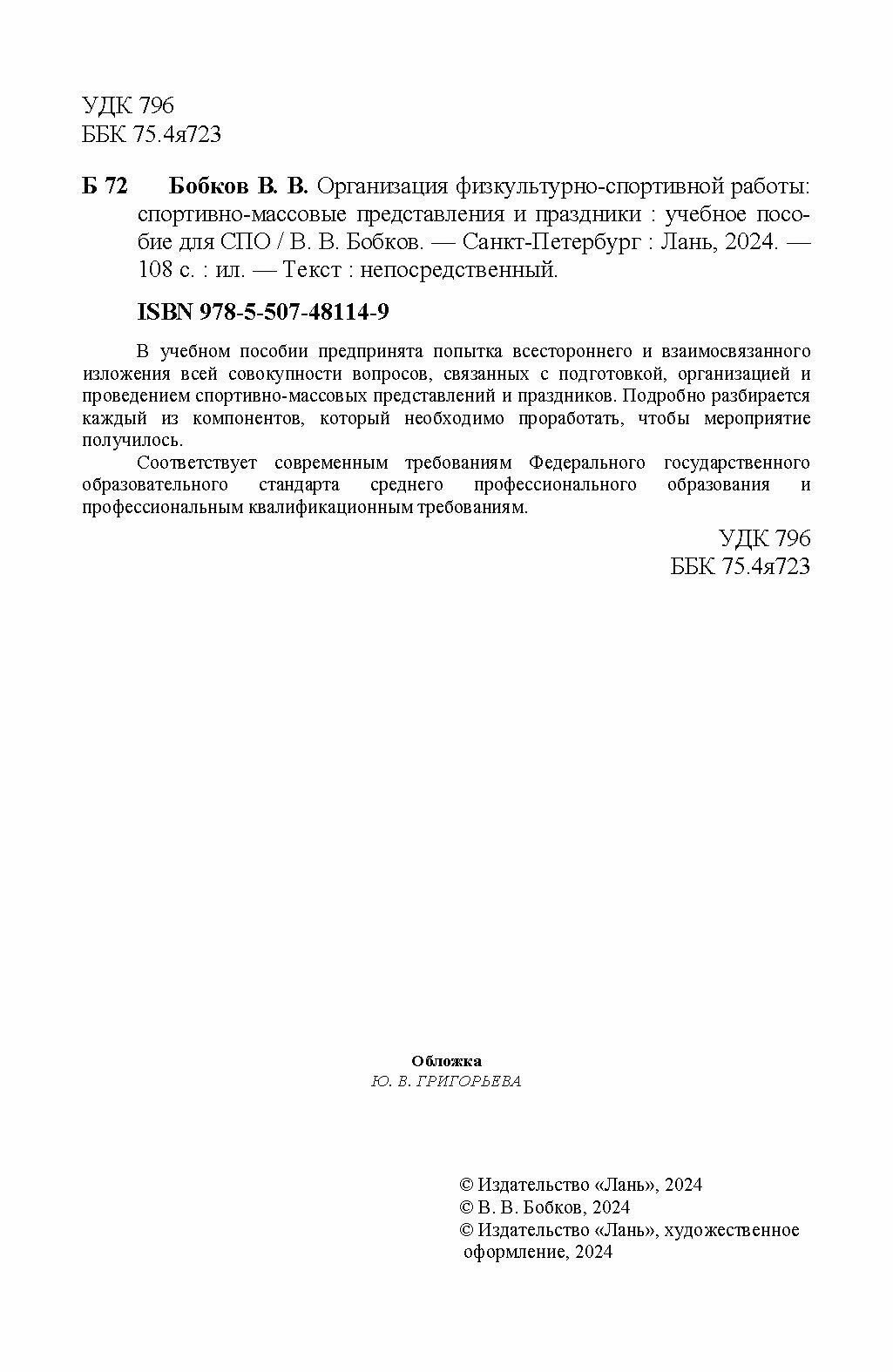 Организация физкультурно-спортивной работы. Спортивно-массовые представления и праздники (Бобков Виталий Викторович); Лань, 2024