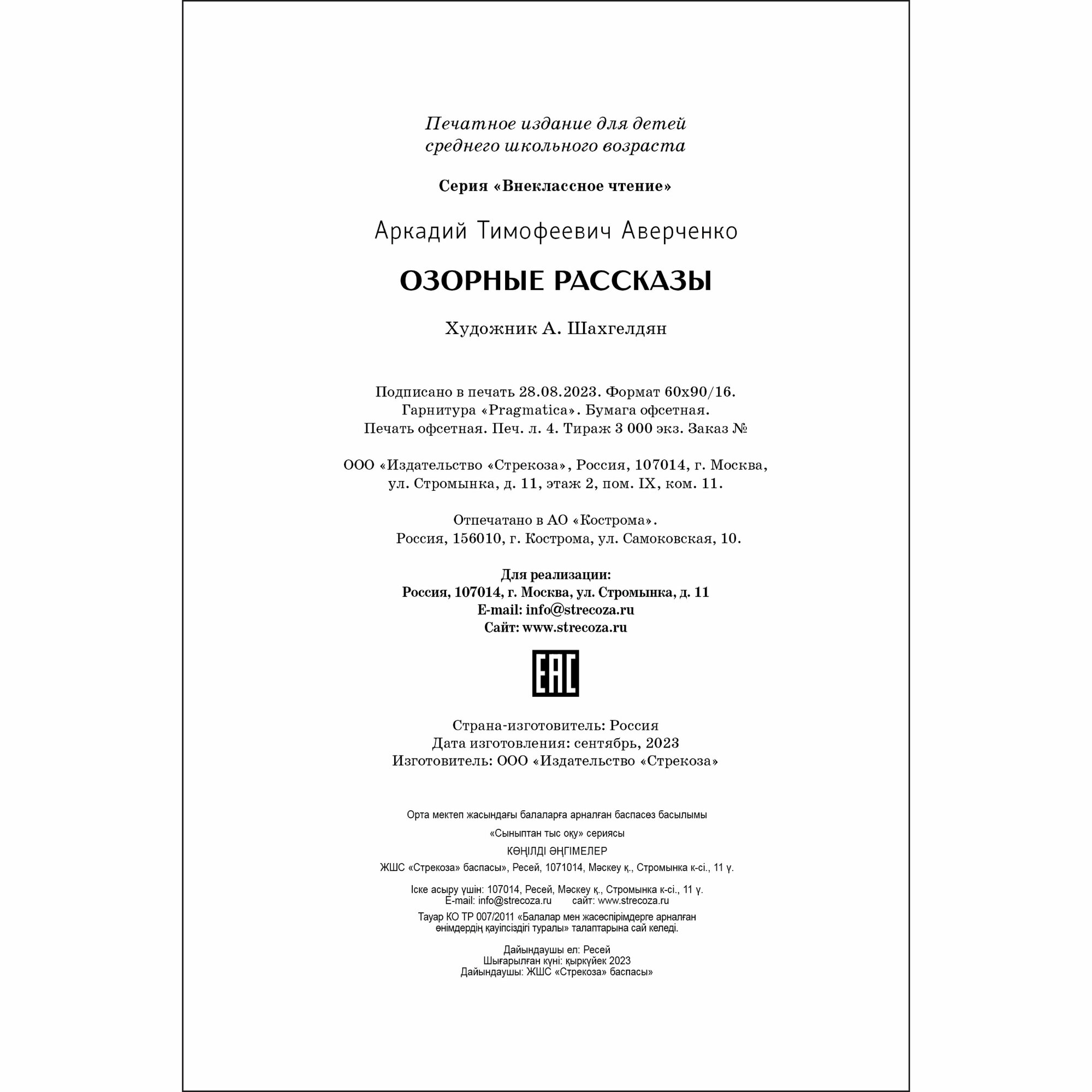 Книга: Озорные рассказы (Аркадий Тимофеевич Аверченко); Стрекоза, 2023