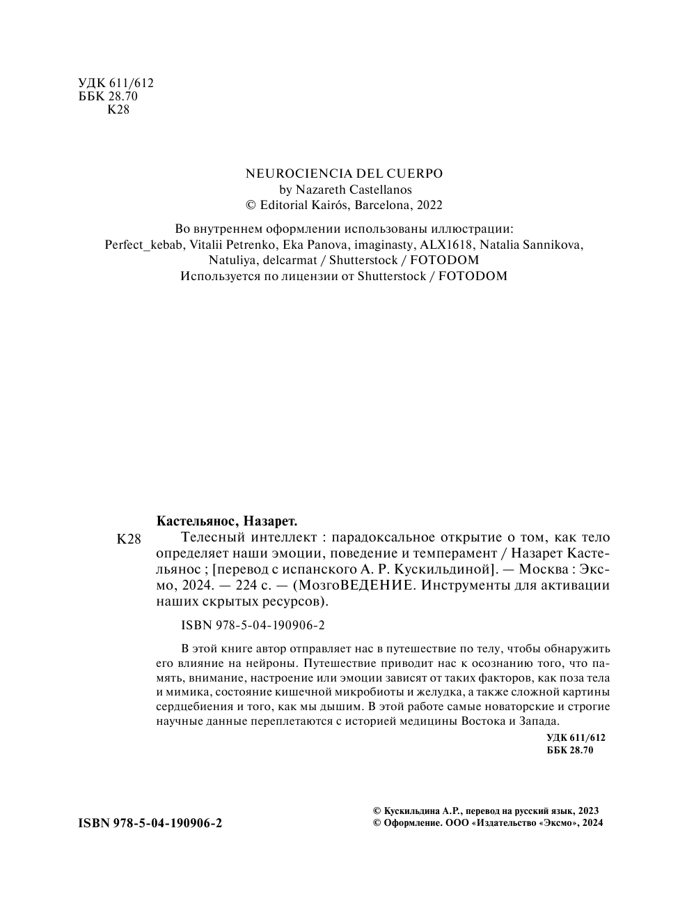 Телесный интеллект. Парадоксальное открытие о том как тело определяет наши эмоции поведение (Назарет Кастельянос); ООО "Издательство "Эксмо", 2025