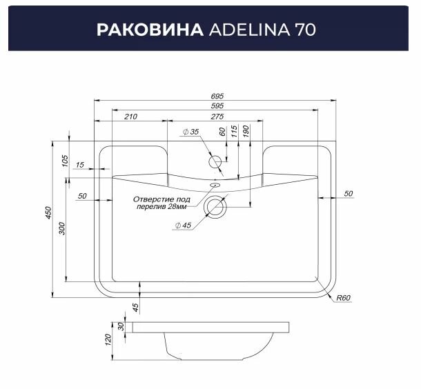 | Ширина раковины | 695.000 |