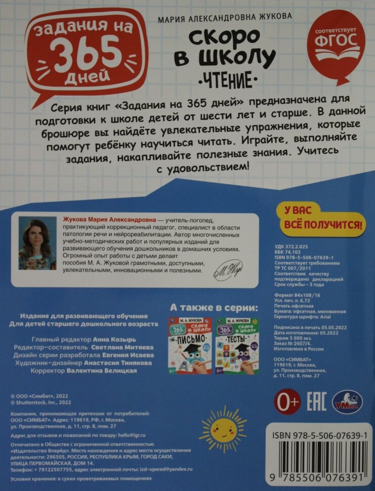 Книга Задания на 365 дней Скоро в школу Чтение Жукова М.А. (Жукова Мария Александровна); Умка, 2020