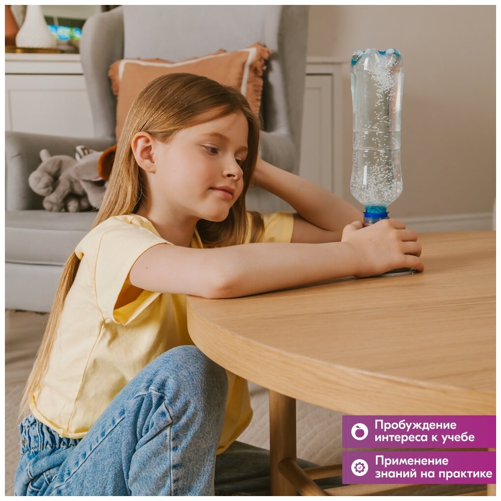 Запустите настольный торнадо в домашних условиях. В наборе содержится все необходимое для сборки пусковой установки. Закрепите сверху бутылку с водой и наблюдайте, как внутри закрутится воронка. Для большего эффекта добавьте красок. От 8 лет.