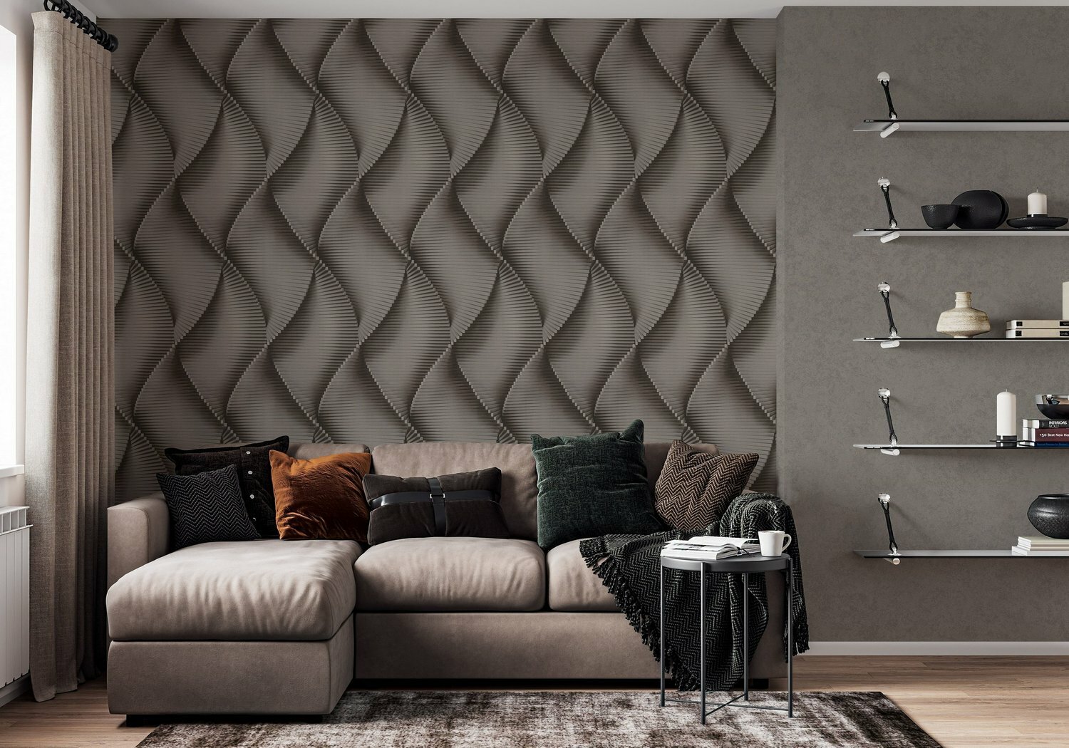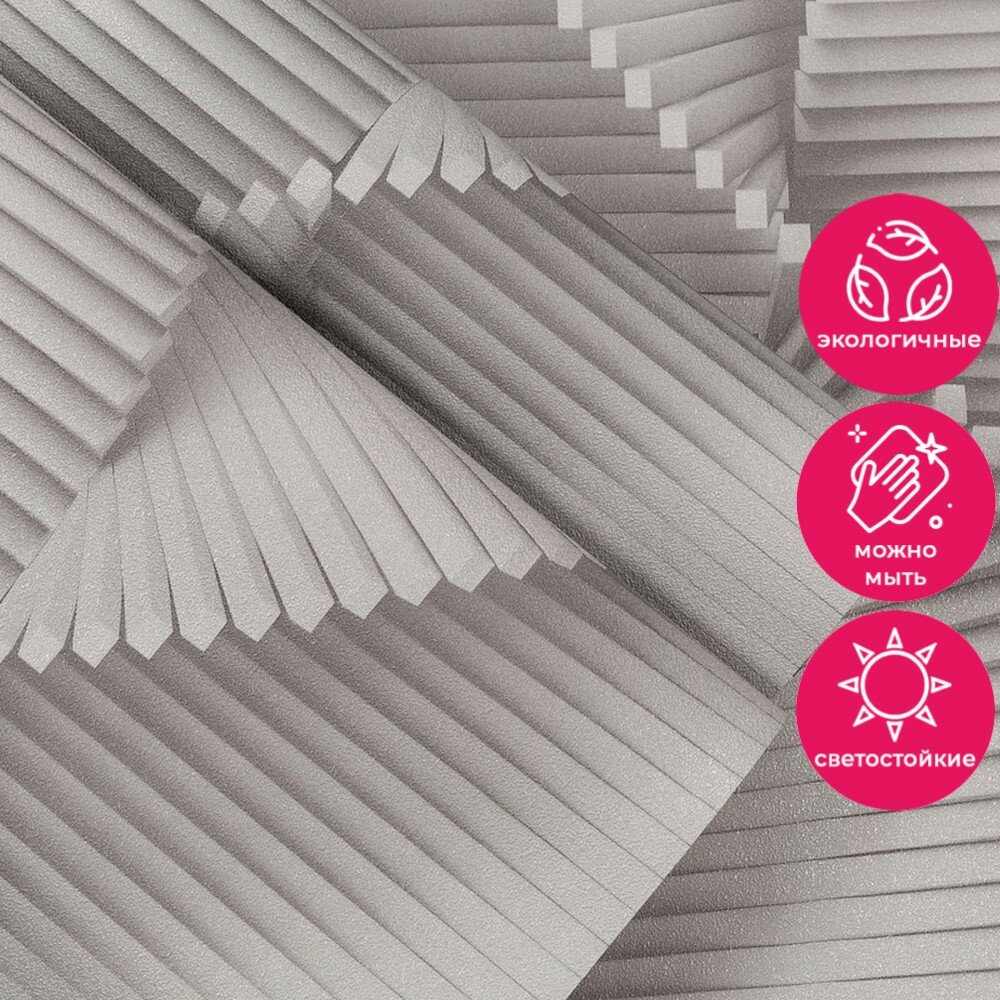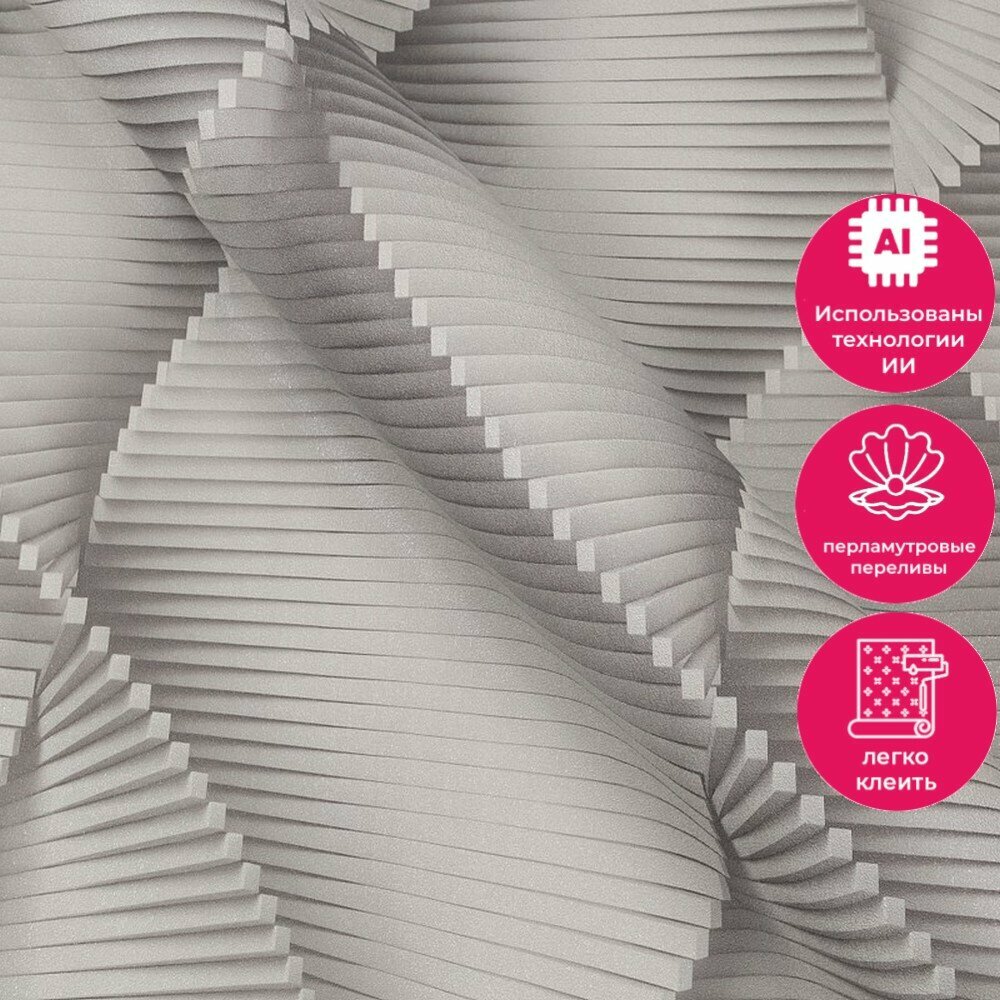 Обои Палитра Dinamica виниловые на флизелиновой основе выполнены в технике горячего тиснения, размер 1,06*10 м. Так как обои флизелиновые, очень легки в поклейке, а также могут скрыть небольшие погрешности стен. Клей Вам надо будет нанести только на стену, что позволит сделать ремонт аккуратней и быстрее. При замене флизелиновые обои снимаются сухими, без предварительного отмачивания, целым полотном без остатка, оставляя стены чистыми. Устойчивые к влаге, воздействию солнца, перепаду температур и различного рода механическим повреждениям. Пропускают воздух, что позволяет избежать возникновения грибка на стенах. Футуристичный линейный мотив коллекции Dinamica в виде спирали динамично развивается вверх, создавая единое бесшовное панно на стене. Градиенты и насыщенные тени образуют объемный 3D-эффект, который визуально увеличивает пространство. Обои имеют хромированную поверхность, который создает эффект матовости. Однотонная и шершавая на ощупь структура напоминает поверхность окрашенной стены. Она отлично сочетается с soft loft, минимализмом и другими популярными интерьерными стилями. Перламутровое напыление на гофрированных элементах рисунка подсвечивает контраст между светлыми и затемненными участками. Это визуально добавляет композиции перспективу и глубину пространства. Компаньоны, имитирующие штукатурку с эффектом "мокрого шелка", добавляют текстурность и привлекательность мотиву. Такие обои идеально подойдут в зал, где вы отдыхаете всей семьей или общаемся с друзьями, так и для спальни, детской, кухни и зоны прихожей. Bнимание! Просим всегда соблюдать инструкцию по наклеиванию обоев, указанную на обратной стороне этикетки Ваших новых обоев!