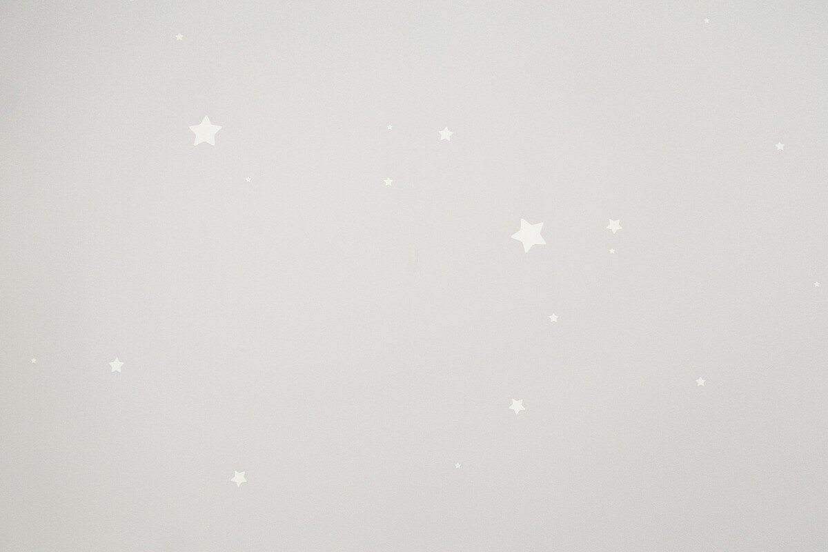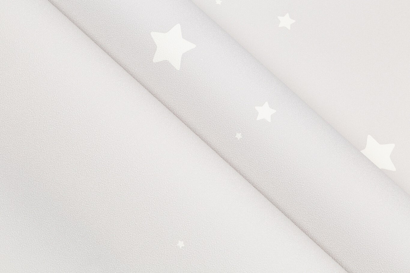 Веселые звездочки на мотиве и фоне волшебно светятся в темноте. Бархатистую поверхность обоев приятно рассматривать и гладить руками. Текстуру можно мыть влажной губкой, поэтому с нее легко удалить детские рисунки карандашом или фломастером