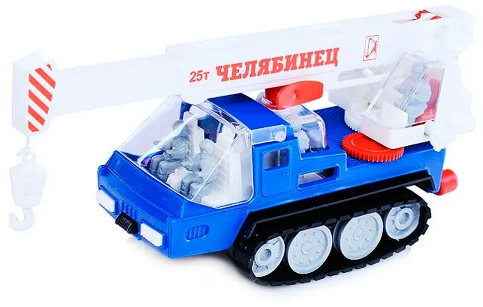 Автокран «Арктика» оснащен множеством интересных функций. Можно открыть пластиковое «стекло» кабины и заглянуть внутрь, увидев 2 фигурки водителя и его помощника. Стрела может подниматься и опускаться, поворачиваться, а вместе с ней движется и трос.
