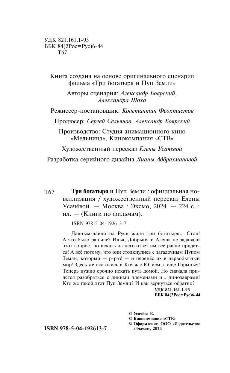 Три богатыря и Пуп Земли. Официальная новеллизация (Елена Александровна Усачева); Эксмо, 2024