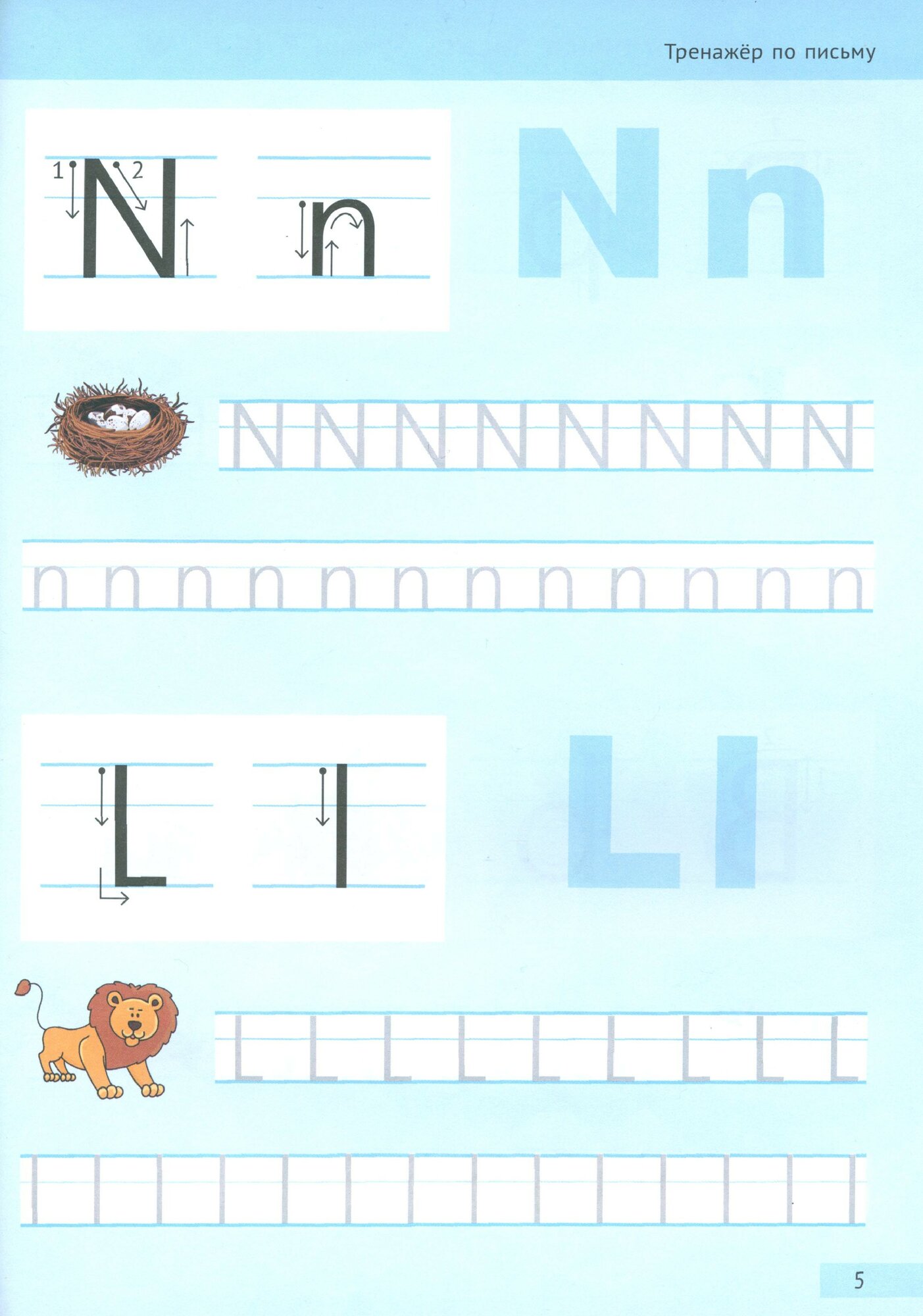 Тренажеры по чтению, письму, грамматике Елены Русиновой пользуются заслуженной популярностью у учеников, их родителей и учителей. Все пособия основаны на современной авторской методике, которая доказала свою эффективность на практике. Новый тренажер по письму продолжает популярную серию пособий. Этот тренажер можно использовать отдельно и в комплекте с изданным тренажером по чтению этого же автора. Красочная рабочая тетрадь «Тренажер по письму» поможет не только тщательно проработать написание всех английских букв, но и научиться писать слова и простые фразы. Ребята с легкостью выучат английский алфавит, познакомятся с основными правилами чтения, с помощью веселых рисунков выучат большое количество английских слов и фраз различной повседневной тематики: «Цвета», «Числительные», «Члены семьи», «Обозначение времени», «Названия животных», «Части тела» и др. В книге используются большие печатные буквы с учетом возрастных особенностей дошкольников и санитарных правил и норм. Рекомендуется приступать к обучению письму на английском языке после выработки навыка читать по-русски. Пособие можно использовать как на занятиях с преподавателем, так и дома при обучении с родителями.