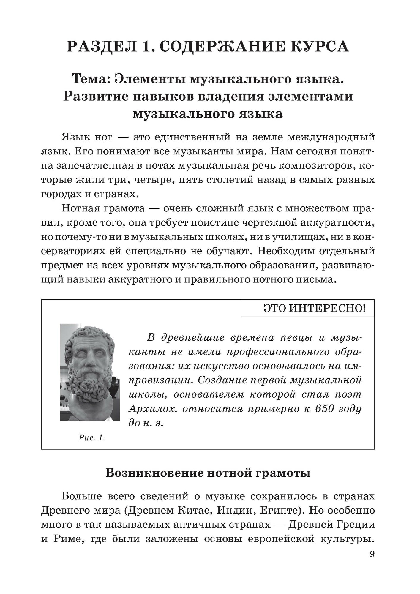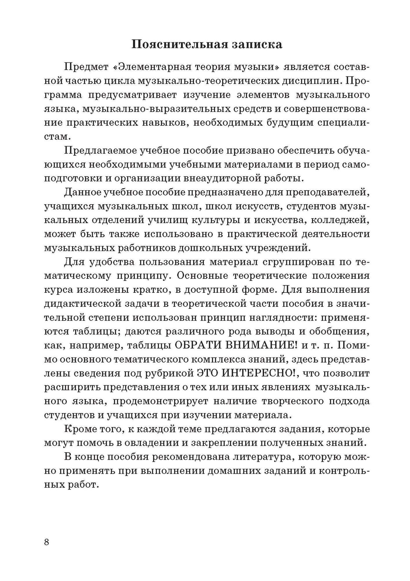 Учебно-методическое пособие представляет собой курс дисциплины "Элементарная теория музыки" в определениях, нотных примерах и заданиях для контроля знаний по темам. Материал сгруппирован по разделам по тематическому принципу, включает теоретический материал, нотные примеры (инструктивные и из произведений классической музыки), задания для овладения практическими навыками, контрольные вопросы, тестовые задания. В ясной и доходчивой форме изложены основные темы изучаемого курса. Пособие снабжено таблицами, рисунками, которые призваны облегчить освоение наиболее трудных дидактических единиц, облегчают чтение и делают материал более доступным. Учебно-методическое пособие предназначено преподавателям, студентам учреждений культуры и искусства, преподавателям и учащимся учреждений дополнительного образования.