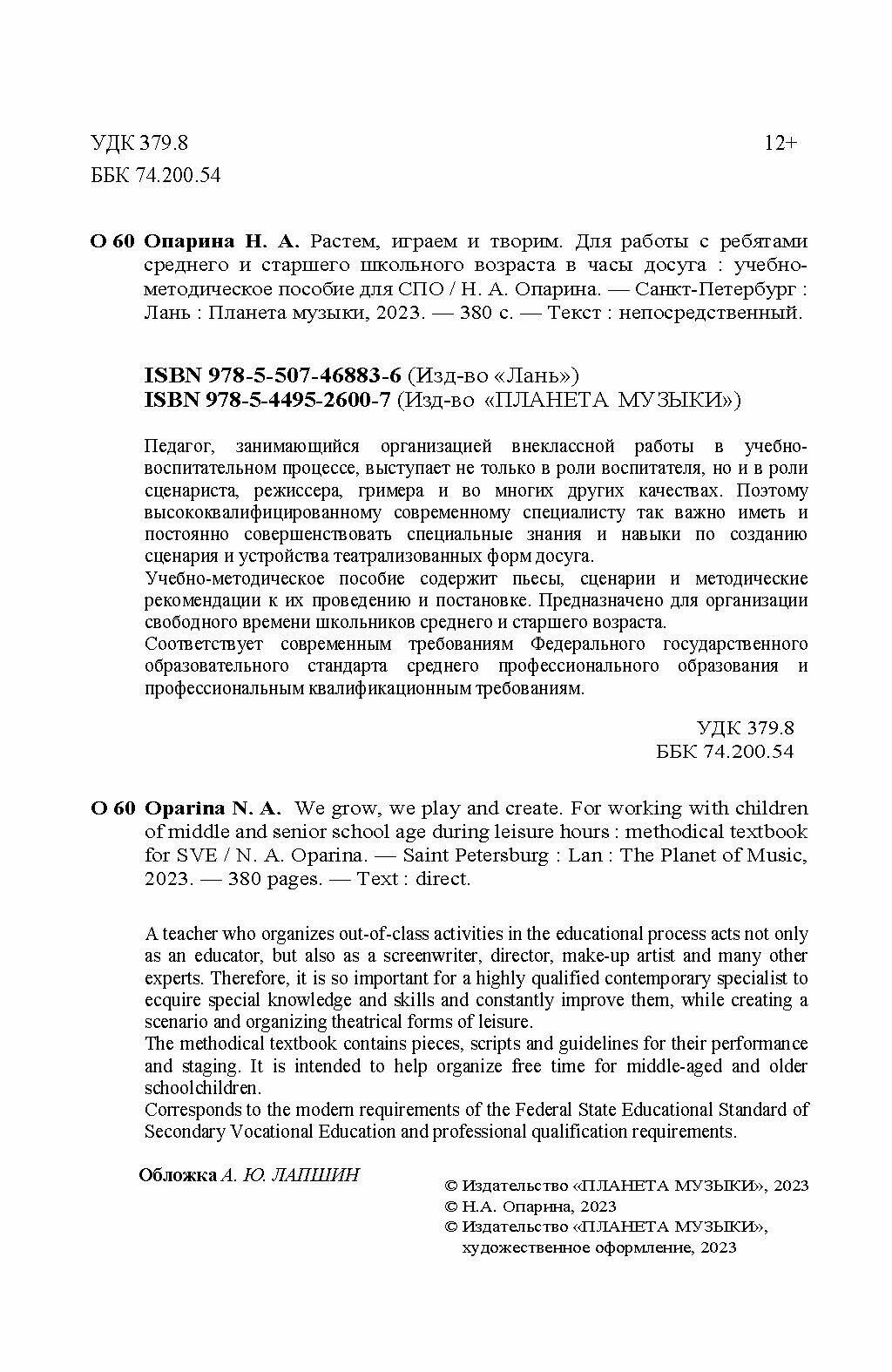 Растем играем и творим. Для работы с ребятами среднего и старшего школьного возраста в часы досуга (Опарина Нина Александровна); Планета Музыки, 2023