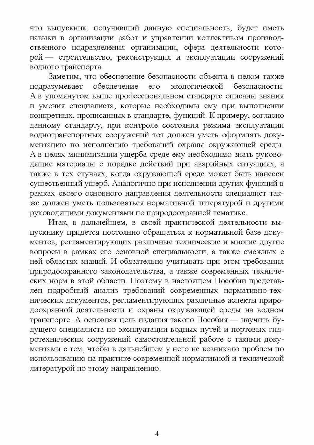 Рассмотрены вопросы обеспечения экологической безопасности объектов внутреннего водного транспорта. Применительно к ним и охране окружающей среды при их функционировании дан анализ требований недавно изданных нормативно-технических документов. Приведены примеры использования документов на практике для решения природоохранных задач. Предназначено для студентов вузов, изучающих портовые и гидротехнические сооружения водного транспорта. Может быть полезно при решении вопросов обеспечения экологической безопасности объектов инженерами-практиками.