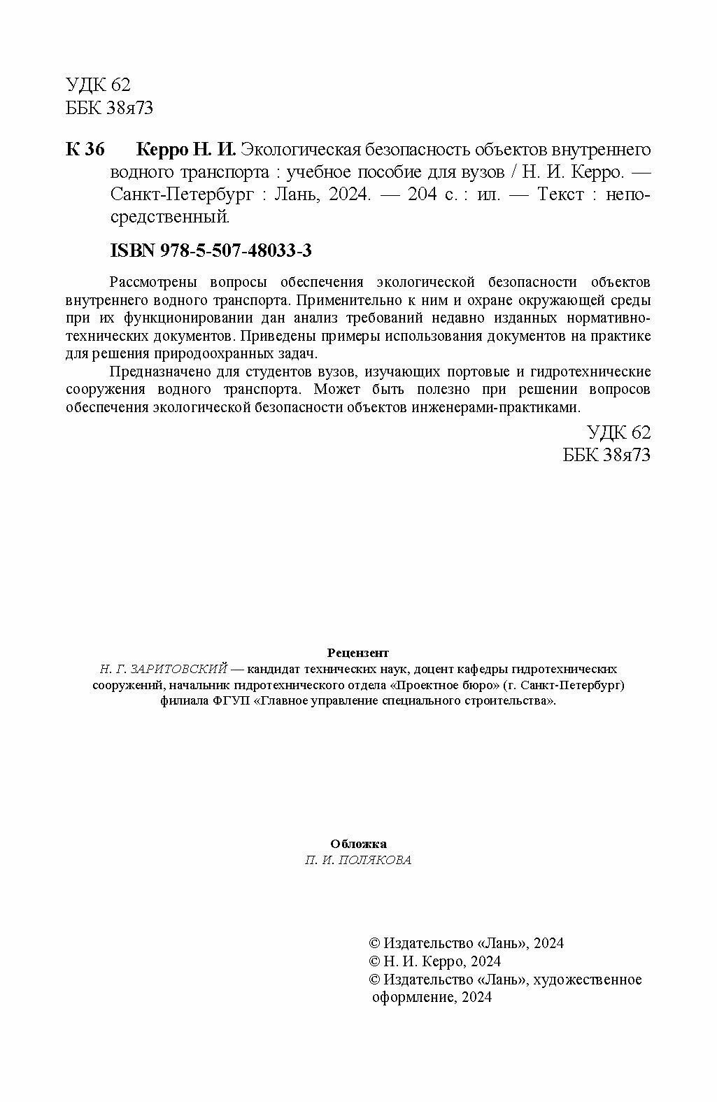 Экологическая безопасность объектов внутреннего водного транспорта. Учебное пособие для вузов (Керро Наталия Ивановна); Лань, 2024