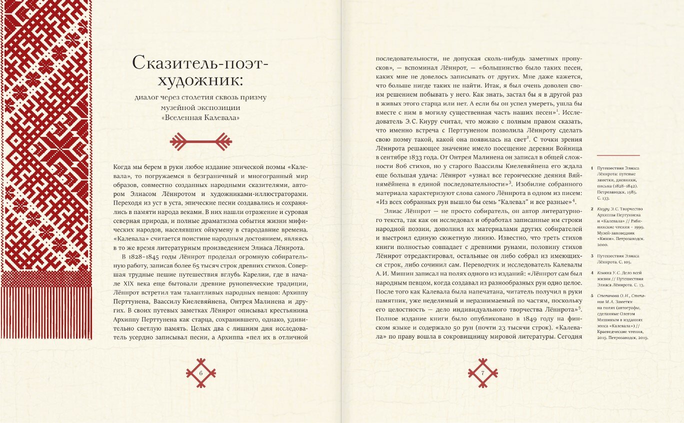 Увидела эту обложку в магазине и влюбилась! Очень красивая книга со стихами-рунами Карелии и Финляндии. Очень-очень красивое оформление книги внутри. Есть много иллюстраций, как я поняла из описания, из музея в Карелии. У меня дома уже была Калевала в советском оформлении, но эта - очень красивая, яркая и позволяет не просто читать тексты рун, а еще и видеть наглядно о чем они. Книга создает чудесный антураж.