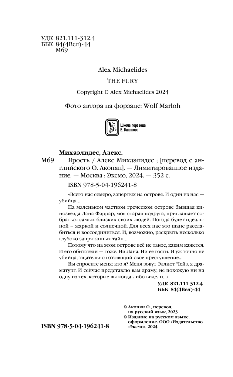 Ярость. Эксклюзивное издание с цветным обрезом (Алекс Михаэлидес); Эксмо, Редакция 1, 2024
