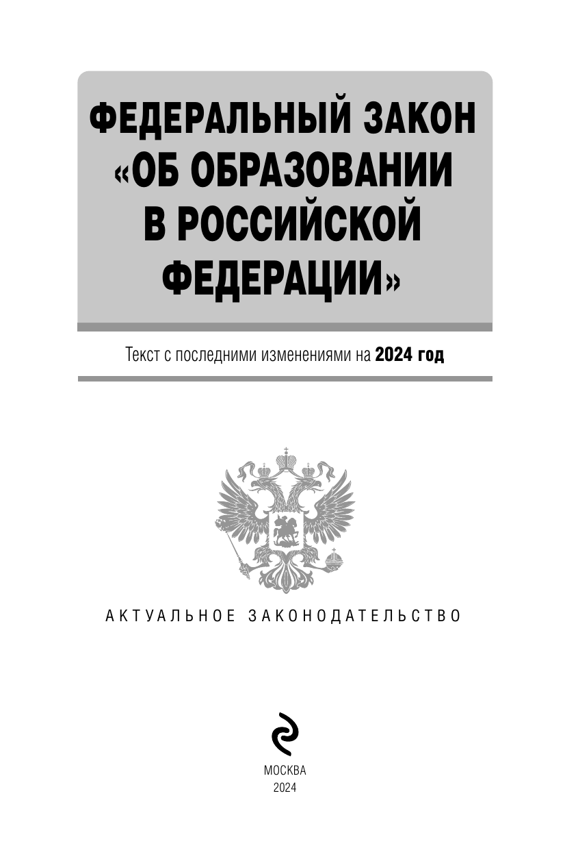 ФЗ "Об образовании в Российской Федерации". В ред. на 2024 / ФЗ № 273-ФЗ (без автора); ООО "Издательство "Эксмо", 2024