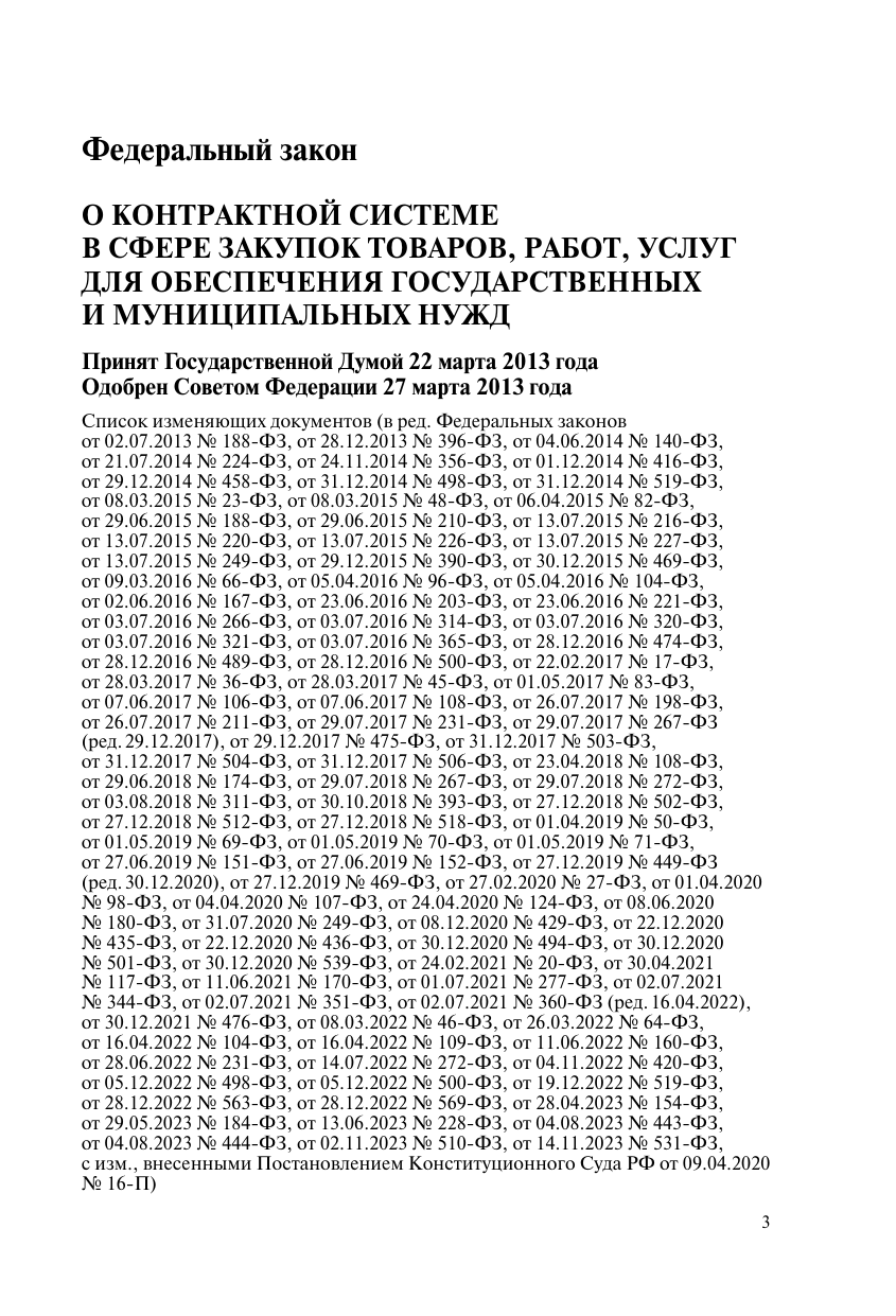 ФЗ "О контрактной системе в сфере закупок товаров работ услуг для обеспечения государственных и муниципальных нужд". В ред. на 2024 / ФЗ № 44-ФЗ (без автора); ООО "Издательство "Эксмо", 2024