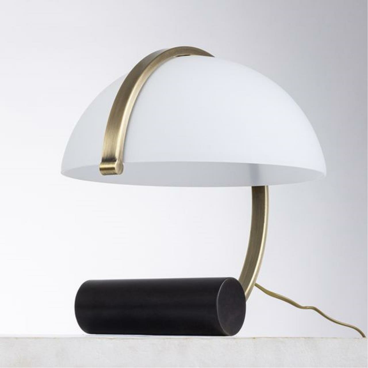 Коллекция BRAVA и модель A5056LT-1AB итальянского производителя Arte Lamp разработана для интерьера гостиной в стиле модерн. Декоративная настольная лампа Arte Lamp BRAVA может осветить 2 кв. м, весит 4 кг и обладает габаритами 32 см по высоте, 32 см диаметром. Арматура бронзового цвета выполнена из металла, полукруглый белый плафон направленный вниз, произведен из стекла. Перед покупкой рекомендуем внимательно изучить инструкции по сборке.