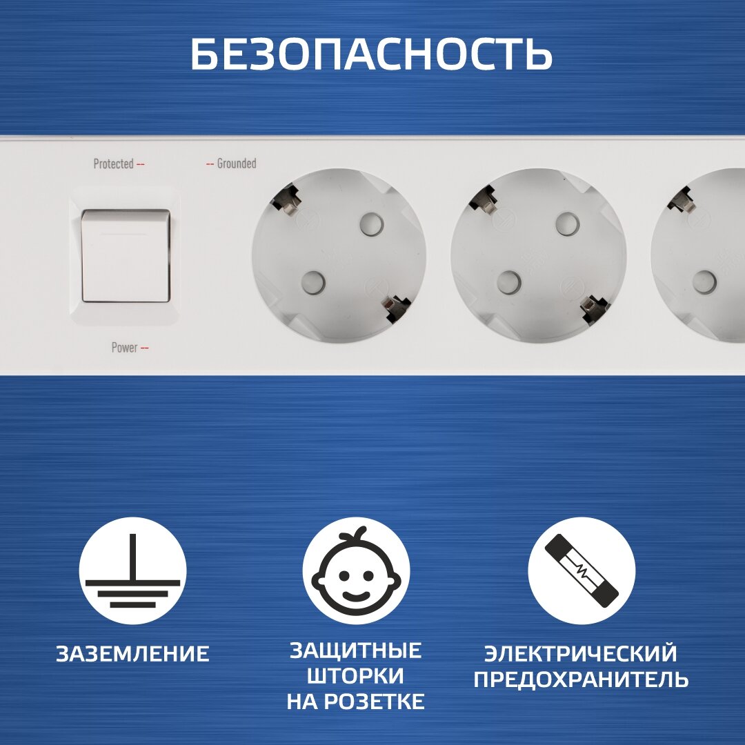 Сетевой фильтр Harper UCH-430 оснащен трёхметровым кабелем, имеет три розетки (защищённые механическими шторками), Type-C и 2 USB-порта со встроенным зарядным устройством для всех ваших гаджетов с поддержкой технологии быстрой зарядки Power Delivery (для порта Type-C, отдача до 20 Вт). Максимальная мощность удлинителя Harper UCH-430 – до 4 кВт. Есть защита от скачков тока и напряжения. Наглядная индикация на корпусе позволяет отслеживать наличие заземления и статус работы фильтра.