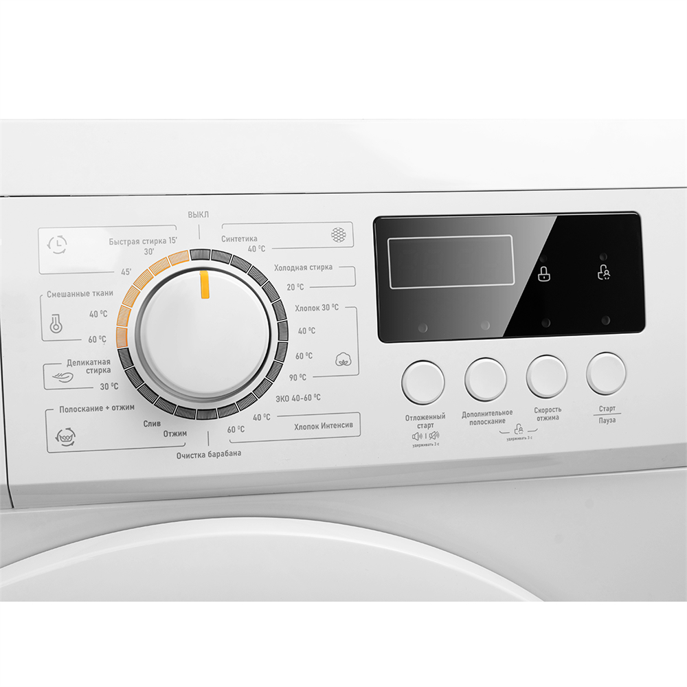 Максимальная загрузка белья составляет 7 кг, что позволяет справиться с большими объемами стирки за один раз. Выбор нужного режима осуществляется при помощи электронного управления и интуитивно понятного дисплея.