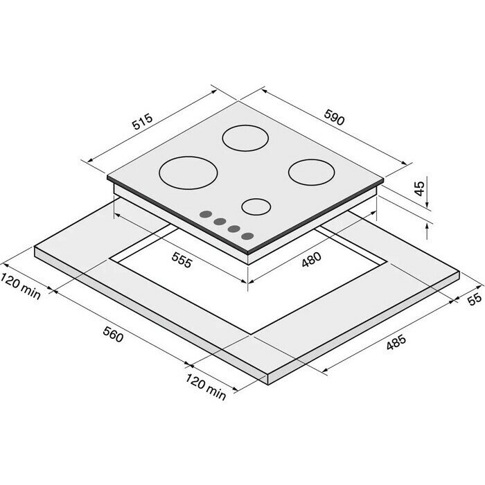 | Размеры для встраивания (ШхГ) | 55.5х48 см |