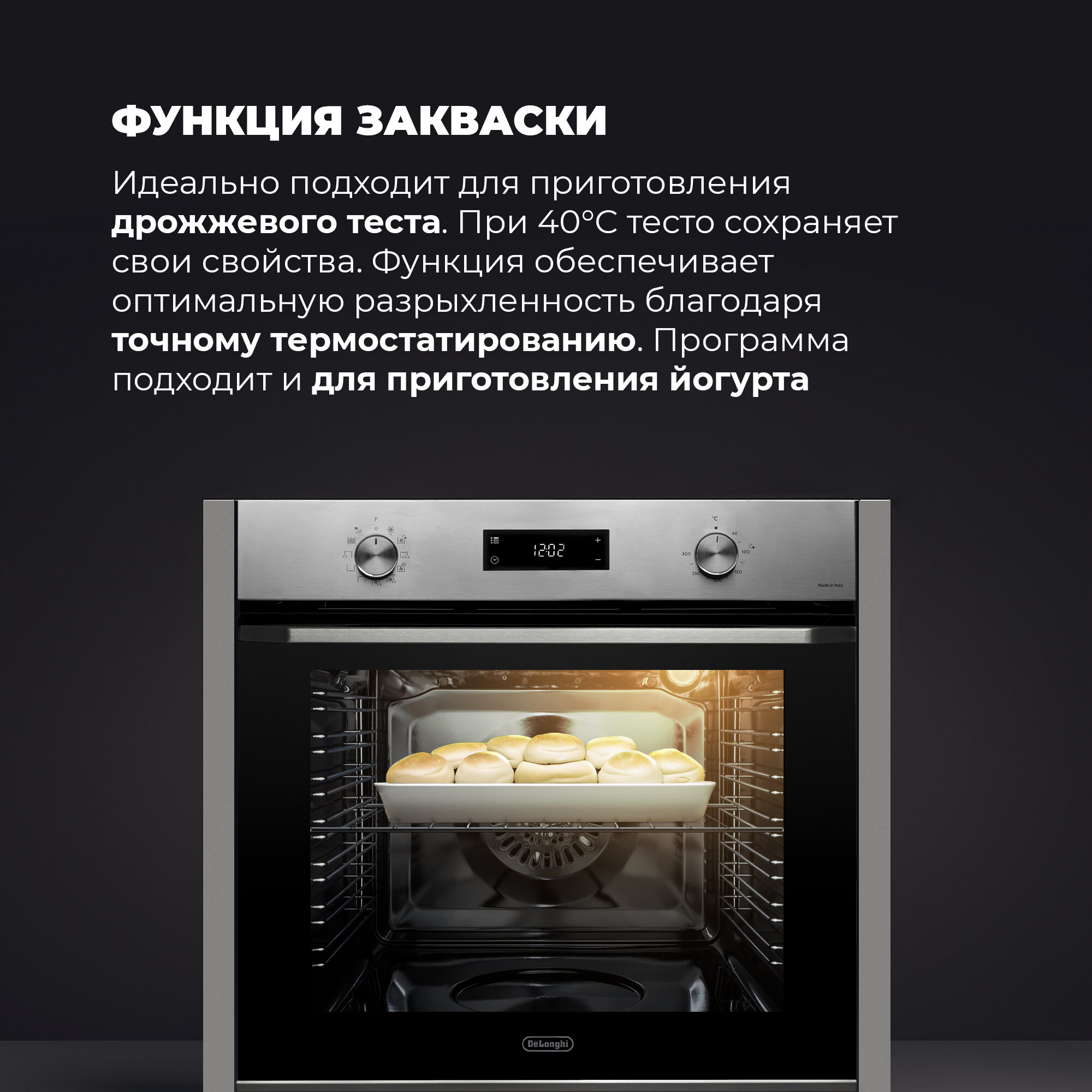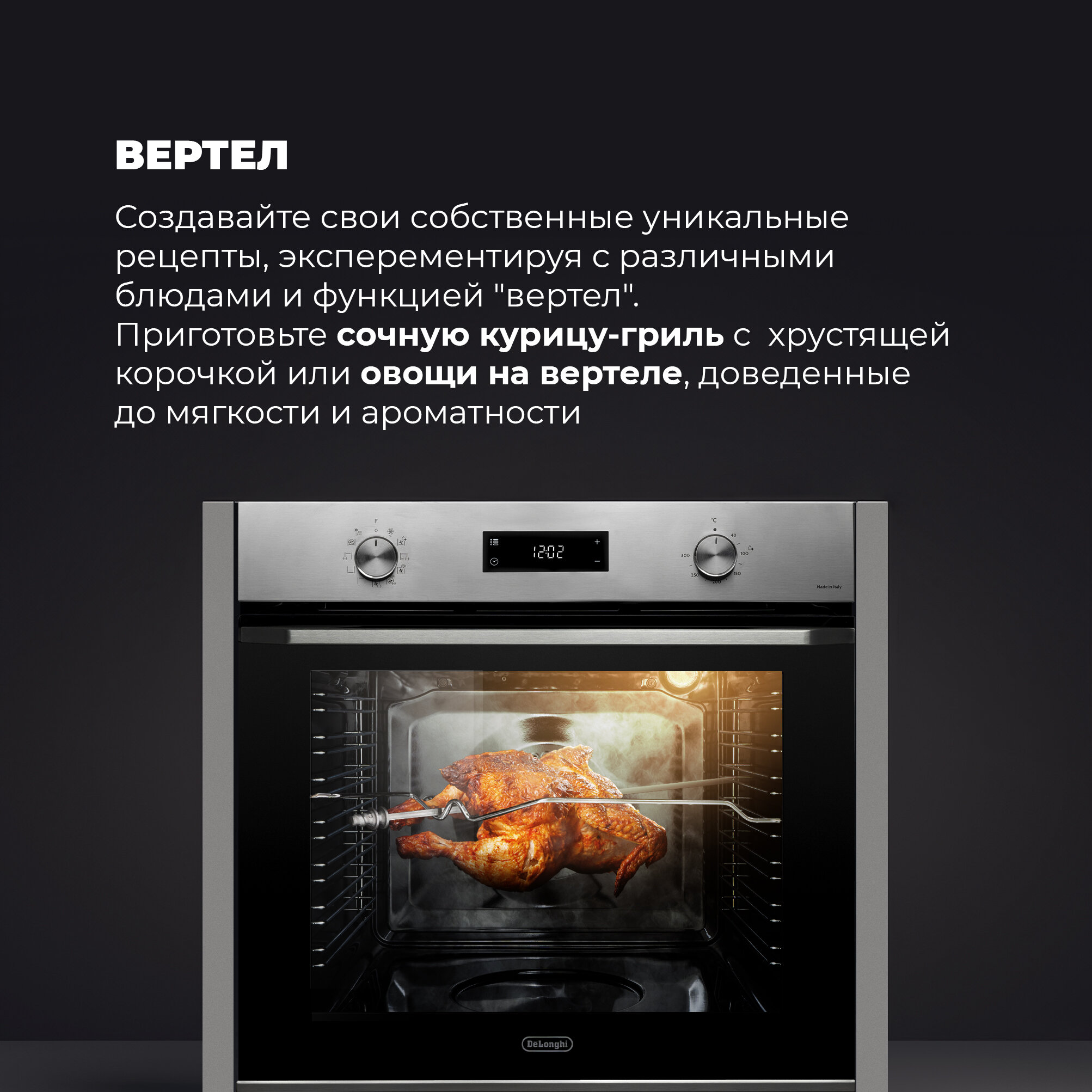Многофункциональный электрический духовой шкаф DeLonghi NSM 11 XL RF RUS открывает большие возможности по приготовлению разнообразных блюд на Вашей кухни. Духовой шкаф от итальянского бренда DeLonghi отличается высочайшей безопасностью, премиум-качеством материалов и сборки и ретро-дизайном.o Класс энергоэффективности А - экономичный расход электроэнергии;o Полезный объем 74 л - оптимальный объем духового шкафа для приготовления большинства блюд;o 11 режимов работы:РазмораживаниеНижний нагрев с конвекцией Верхний и нижний нагрев Конвекция Экстра конвекция Гриль и конвекция Электрический гриль Верхний нагрев Нижний нагрев ТурбоНижний нагрев с экстра конвекциейo Таймер - контролируйте время работы духового шкафа; o Ускоренный разогрев Booster – быстрый предварительный нагрев камеры до 300°С за 15 минут.o Система Air fry - приготовление пищи без маслаo 7-ми уровневые хромированные направляющие.o Максимальная температура 300°С - увеличенный диапазон температур для приготовления ещё большего количества различных блюд;o Паровая очистка (HydroClean) – современная система очистки духового шкафа без усилий. Быстрая и эффективная очистка духовки паром. o Автоматическая подсветка при открытии дверцы