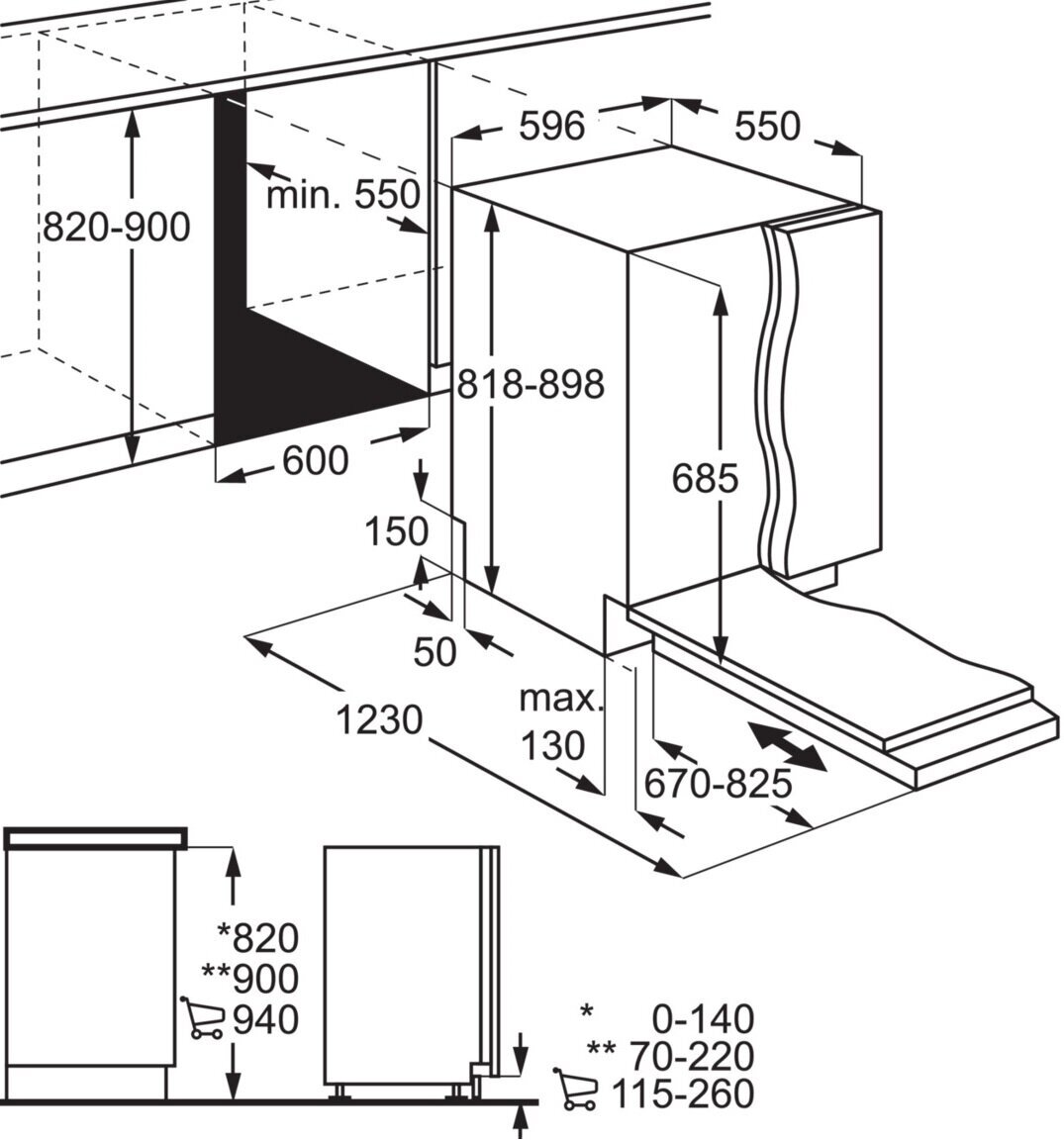 | Размер ниши, мм (В*Ш*Г) | 820-900x600x550 |