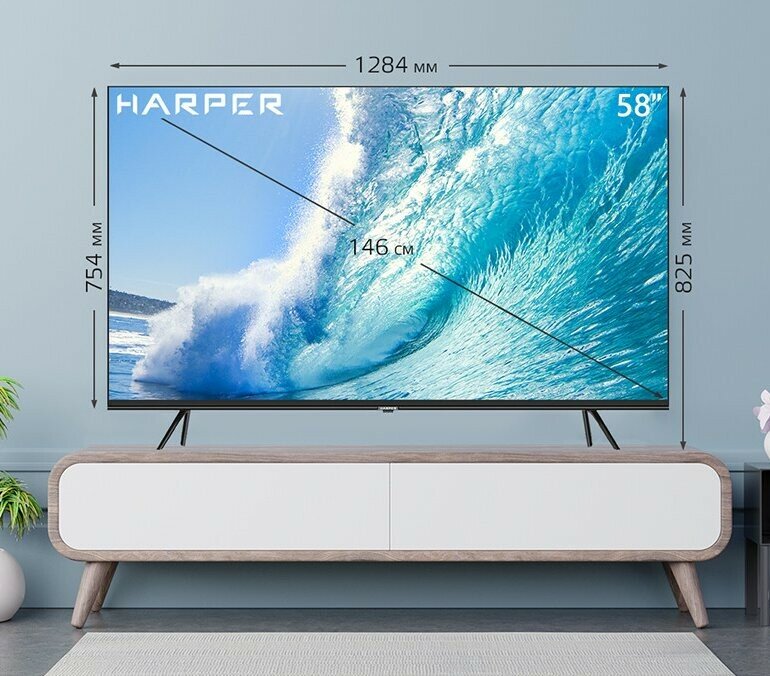 Наслаждайтесь просмотром любимых программ и фильмов в разрешении 4K Ultra HD с LED телевизор Harper . Большой 58 - дюймовый экран с тонкими рамками, обладающий широкими углами обзора и разрешением 3840х2160, обеспечивает максимально четкое, яркое и насыщенное изображение. Стабильно принимать сигналы цифрового и кабельного вещания позволяют встроенные цифровые тюнеры, а с помощью функции SMART TV, на базе Android 11 версии, вы сможете не зависеть от программы вещания, и в любое удобное время смотреть фильмы, сериалы и развлекательные шоу в сети интернет. 4K Ultra HD телевизор Harper - это настоящий медиацентр с широким выбором функций: запись ТВ программ по расписанию, функция Time Shift, отображение программы телепередач, воспроизведение медиафайлов с внешних носителей. Для подключения LED телевизора Harper к различным устройствам, а также для воспроизведения видео с внешних носителей предусмотрены разъемы USB и HDMI c функцией CEC, а для подключения к сети интернет - Wi-Fi и LAN.