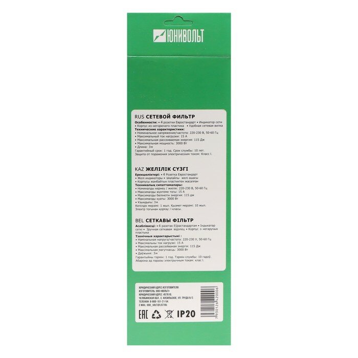 На сегодняшний день товар «Сетевой фильтр Юнивольт 00-00000449» можно купить с кешбеком в 1 магазине: Яндекс.Маркет