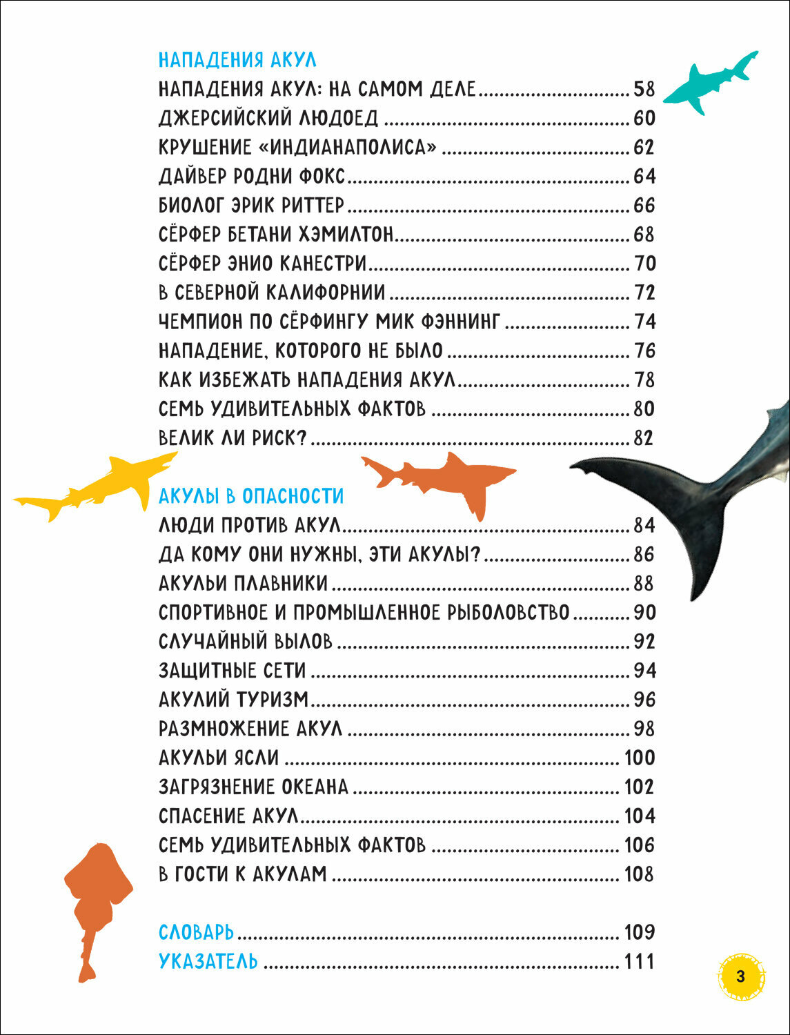 В этой иллюстрированной энциклопедии рассказывается о могучих и загадочных обитателях океанических глубин — акулах. Читатели узнают, как охотятся разные акулы, как они выглядят, какие из акул опасны для человека, а также о том, что нужно сделать для того, чтобы спасти этих уникальных животных от вымирания.