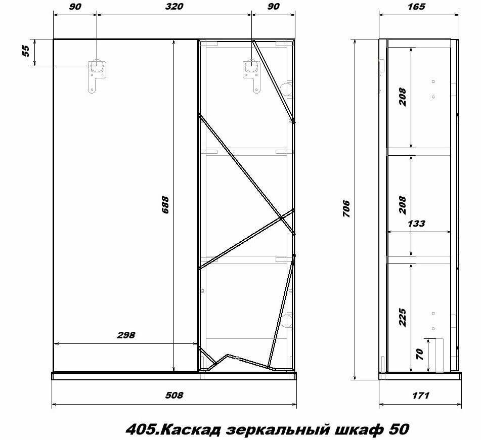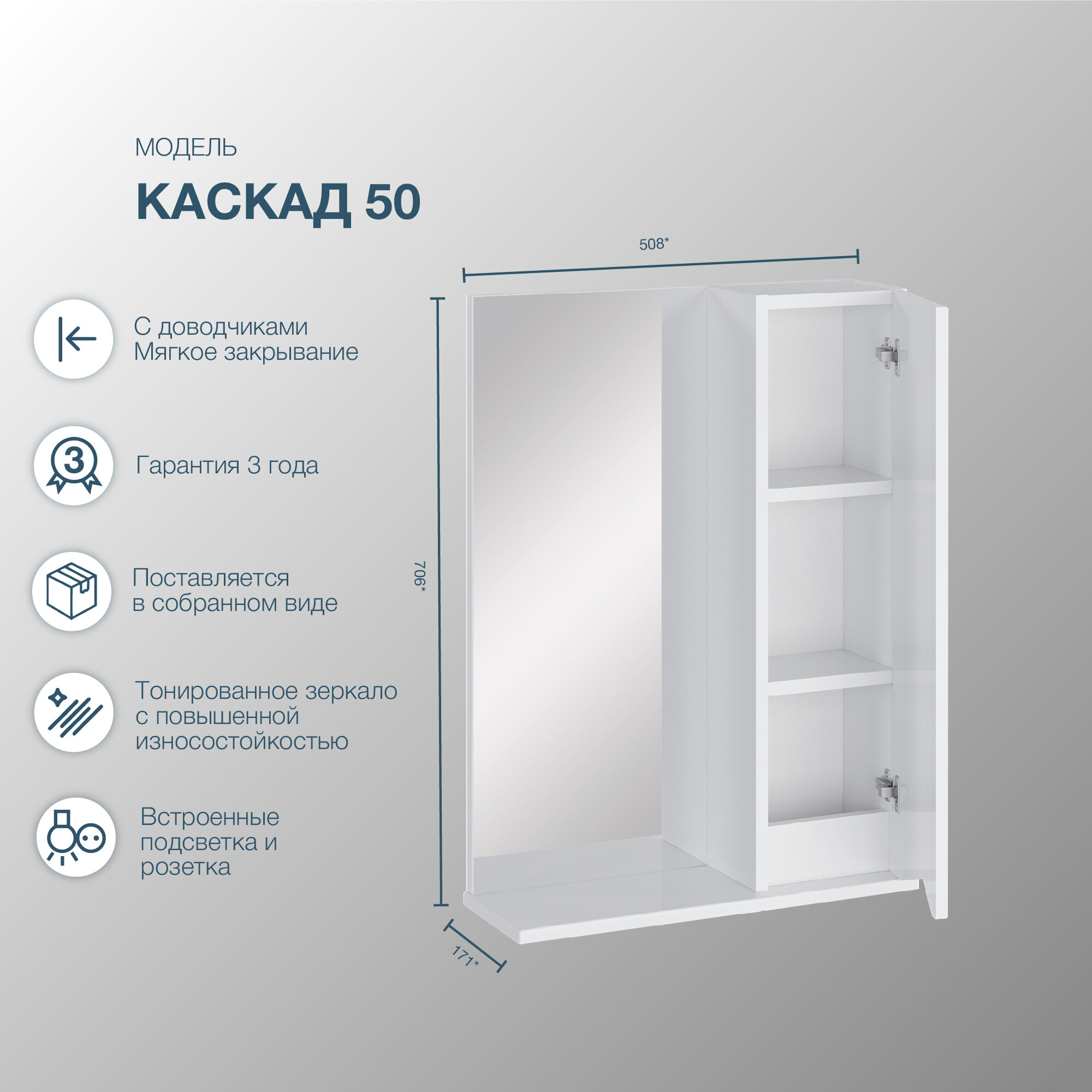 Зеркало-шкаф SanStar Каскад 50 R белый Каскад 405.1-2.4.1.