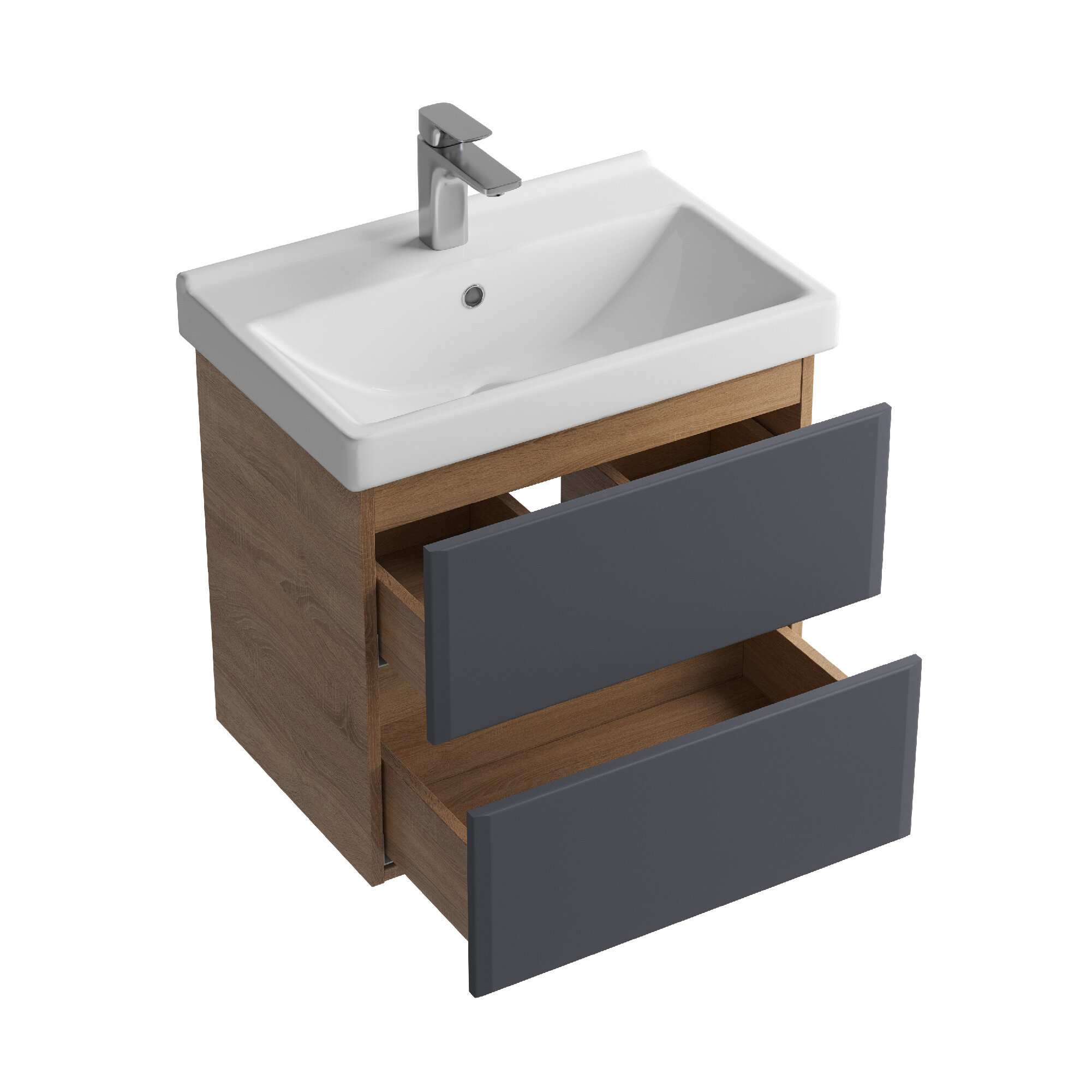 Тумба с раковиной SanStar Инфинити 50 подвесная дуб сонома светлый/графит софт (раковина Фест 50) Инфинити 390.1-1.4.1.КФЕС