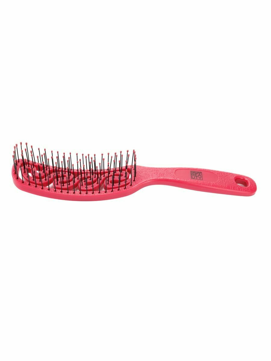 Щетка для расчесывания и укладки волос - аксессуар, который должны быть у каждой представительницы прекрасного пола. Продувная щетка для волос выполнена из переработанного пластика, поэтому ее можно считать экологически чистым продуктом. Графическая текстура на щетке – предотвращает скольжение в руках.