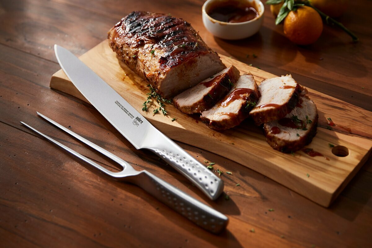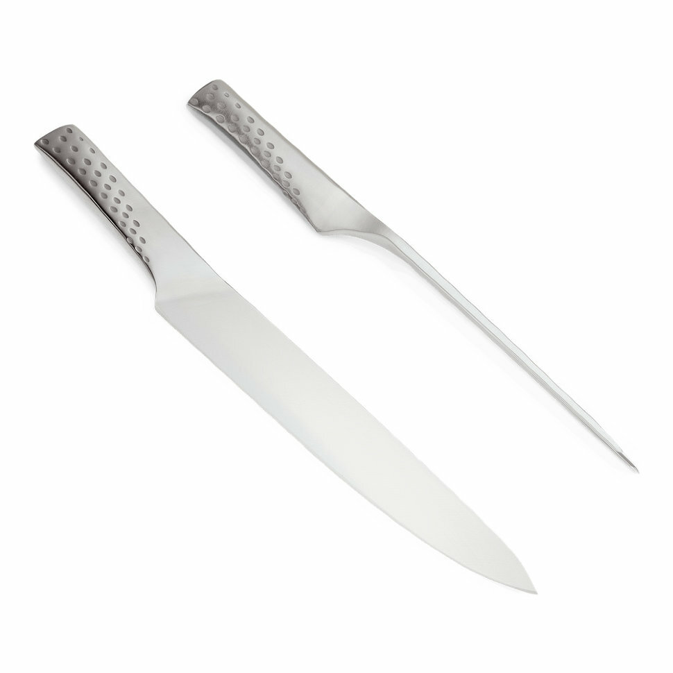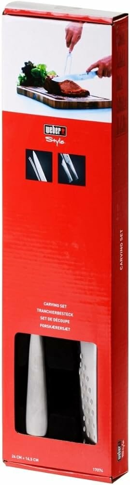 Фирменный набор для нарезки от Weber станет хорошим помощником в подготовке блюд к столу. В набор входит эксклюзивный нож, который позволит качественно порезать филе, а также вилка, которая поможет поддерживать блюдо другой рукой. Долгосрочность службы обеспечивает высококачественная нержавеющая сталь. Благодаря элегантному дизайну фирменный набор подойдет к любой кухне.