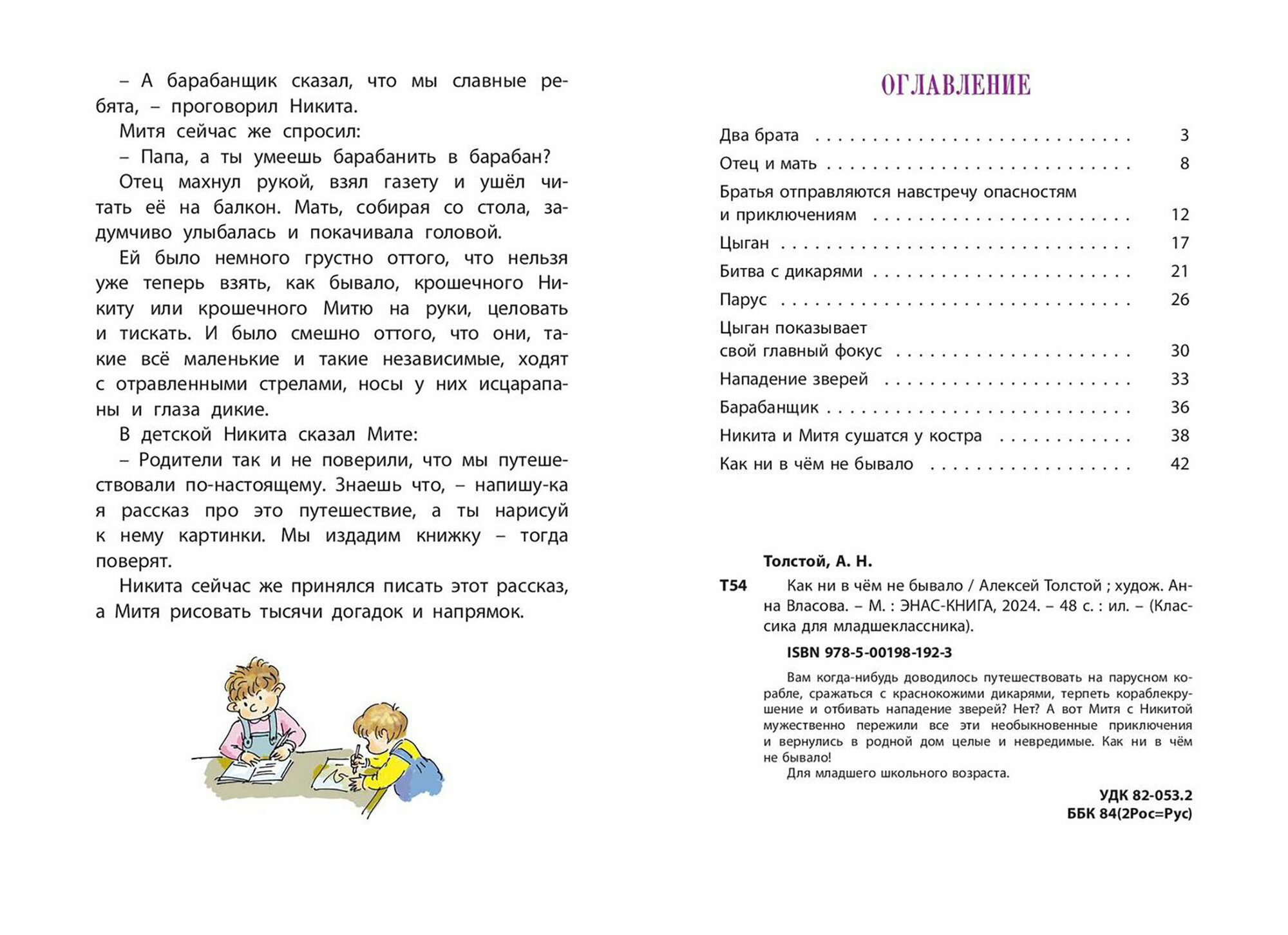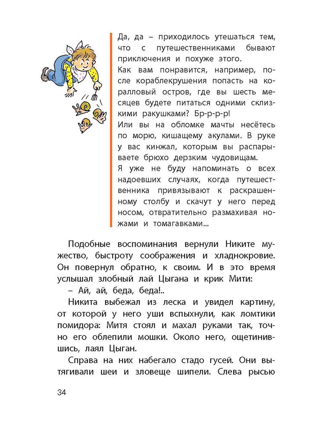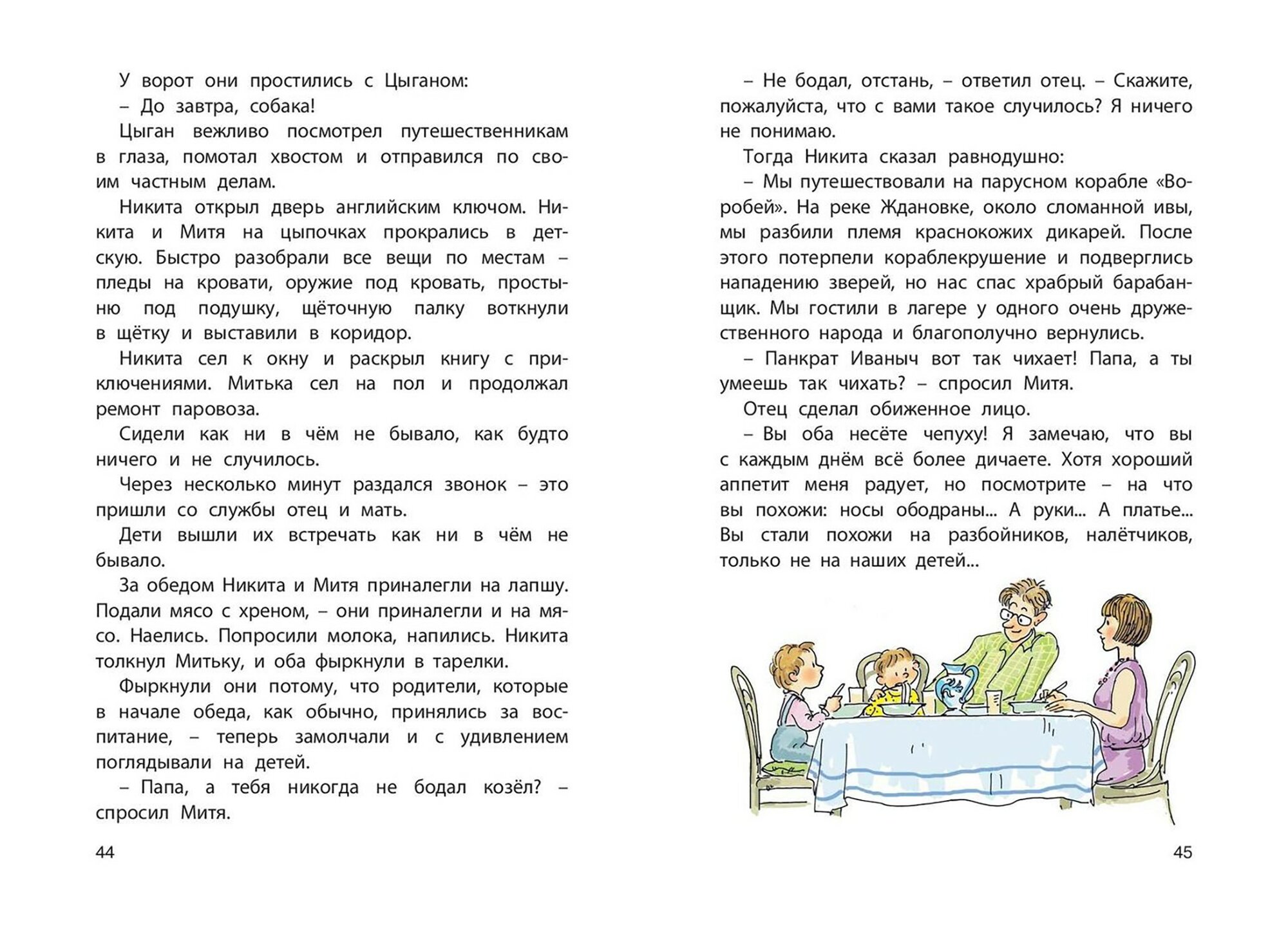 Вам когда-нибудь доводилось путешествовать на парусном корабле, сражаться с дикарями, терпеть кораблекрушение и отбивать нападение зверей? Нет? А вот Митя с Никитой мужественно пережили все эти необыкновенные приключения и вернулись в родной дом целые и невредимые. Как ни в чем не бывало! Для младшего школьного возраста.