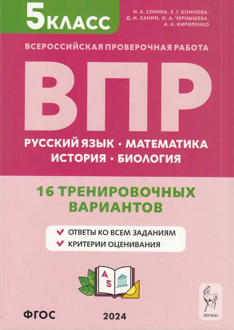 ВПР. 5 класс. 16 тренировочных вариантов. Русский язык математика биология история (Кириленко Анастасия Анатольевна, Сенина Наталья Аркадьевна, Коннова Елена Генриевна, Чернышева Ольга Александровна, Ханин Дмитрий Игоревич); Легион, 2024