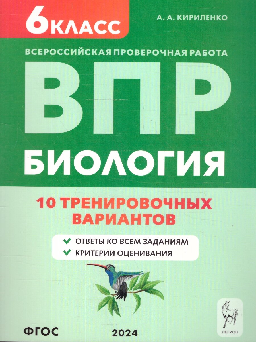 ВПР. Биология. 6-й класс. 10 тренировочных вариантов (Кириленко Анастасия Анатольевна); Легион, 2024