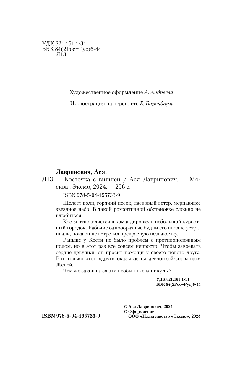 Книга: Косточка с вишней (Ася Лавринович); Эксмо, Like Book, Редакция 1, 2024