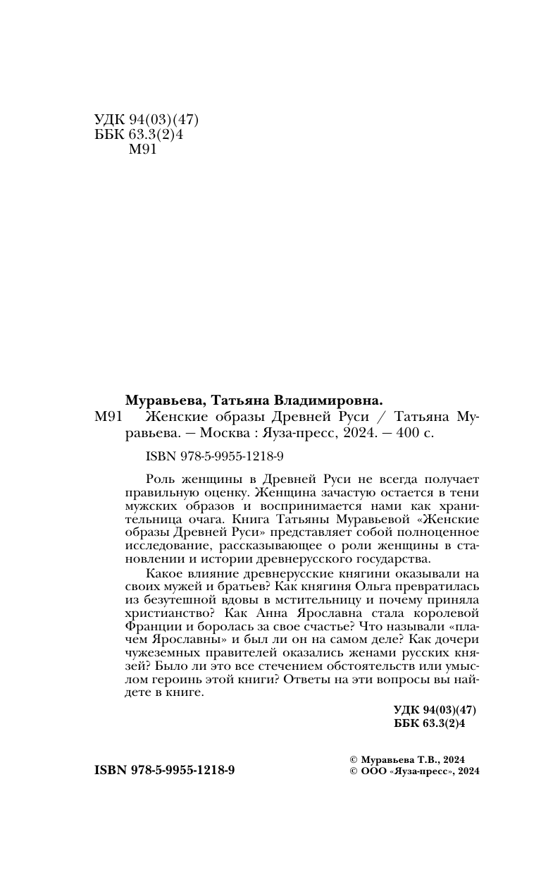 Женские образы Древней Руси (Татьяна Владимировна Муравьева); Яуза, 2024