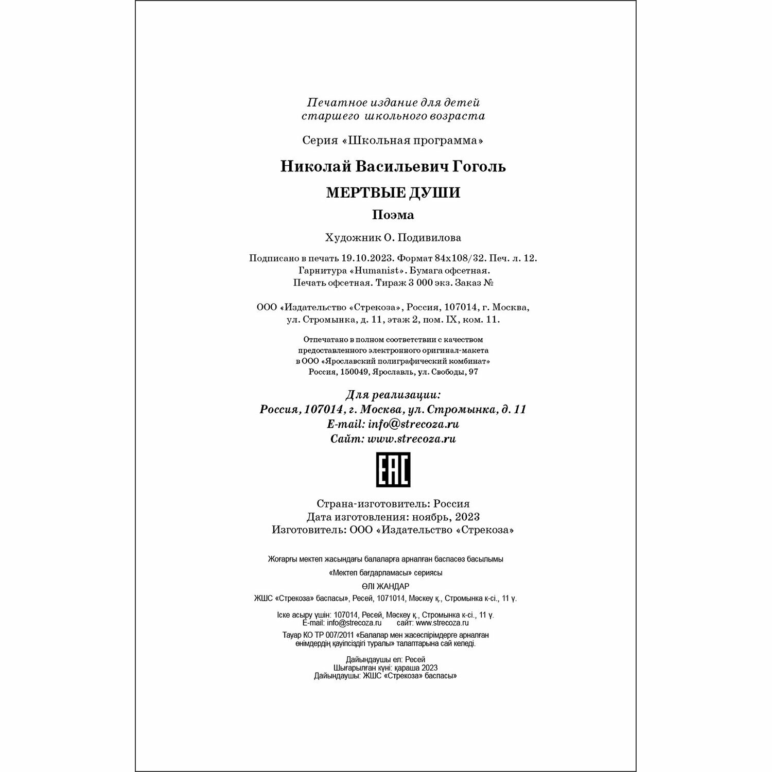 Книга: Мертвые души (Гоголь Николай Васильевич); Стрекоза, 2023