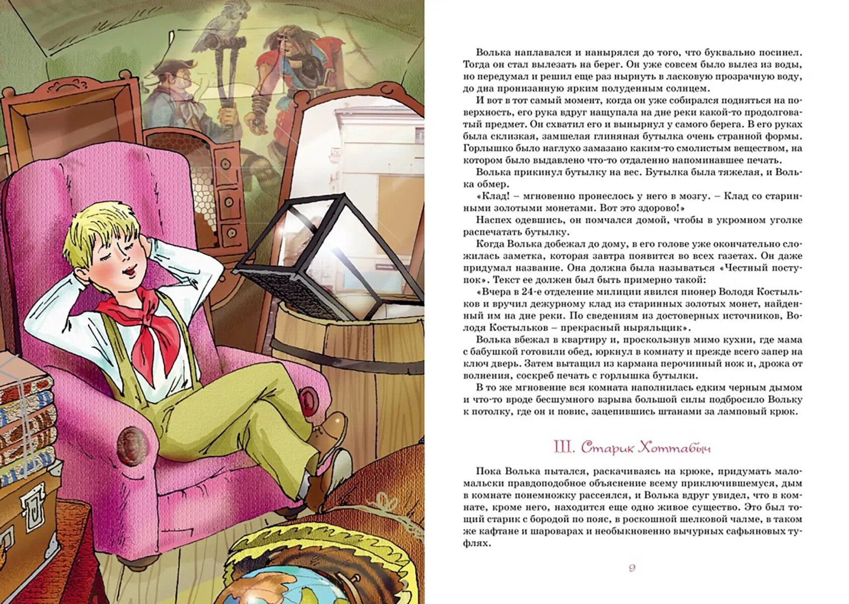 Повесть-сказка «Старик Хоттабыч» вышла в 1938 году и с тех пор стала одной из самых любимых детских книг. Уже несколько поколений мальчишек и девчонок нашей страны с удовольствием читают о приключениях джинна, попавшего из времен царя Соломона в советскую страну конца 1930-х годов. И не важно, что книга была написана почти сто лет назад, ведь история о том, как пионер Волька Костыльков выловил в реке старинный кувшин и выпустил из него джинна, - по-настоящему добрая, веселая и увлекательная. Она переведена на многие языки, в том числе на английский, немецкий, чешский, болгарский, китайский. Ее автор Лазарь Иосифович Гинзбург, писавший под псевдонимом Л. Лагин, сочинил еще несколько книг, но благодаря именно «Старику Хоттабычу» его имя навсегда останется в истории детской литературы.