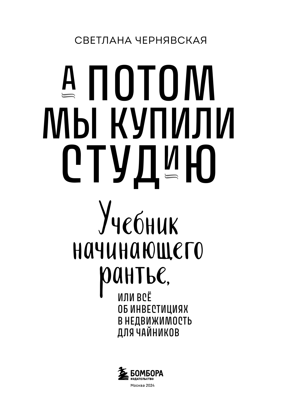 А потом мы купили студию. Учебник начинающего раннтье или все об инвестициях в недвижимость (Чернявская Светлана Ивановна); ООО "Издательство "Эксмо", 2023