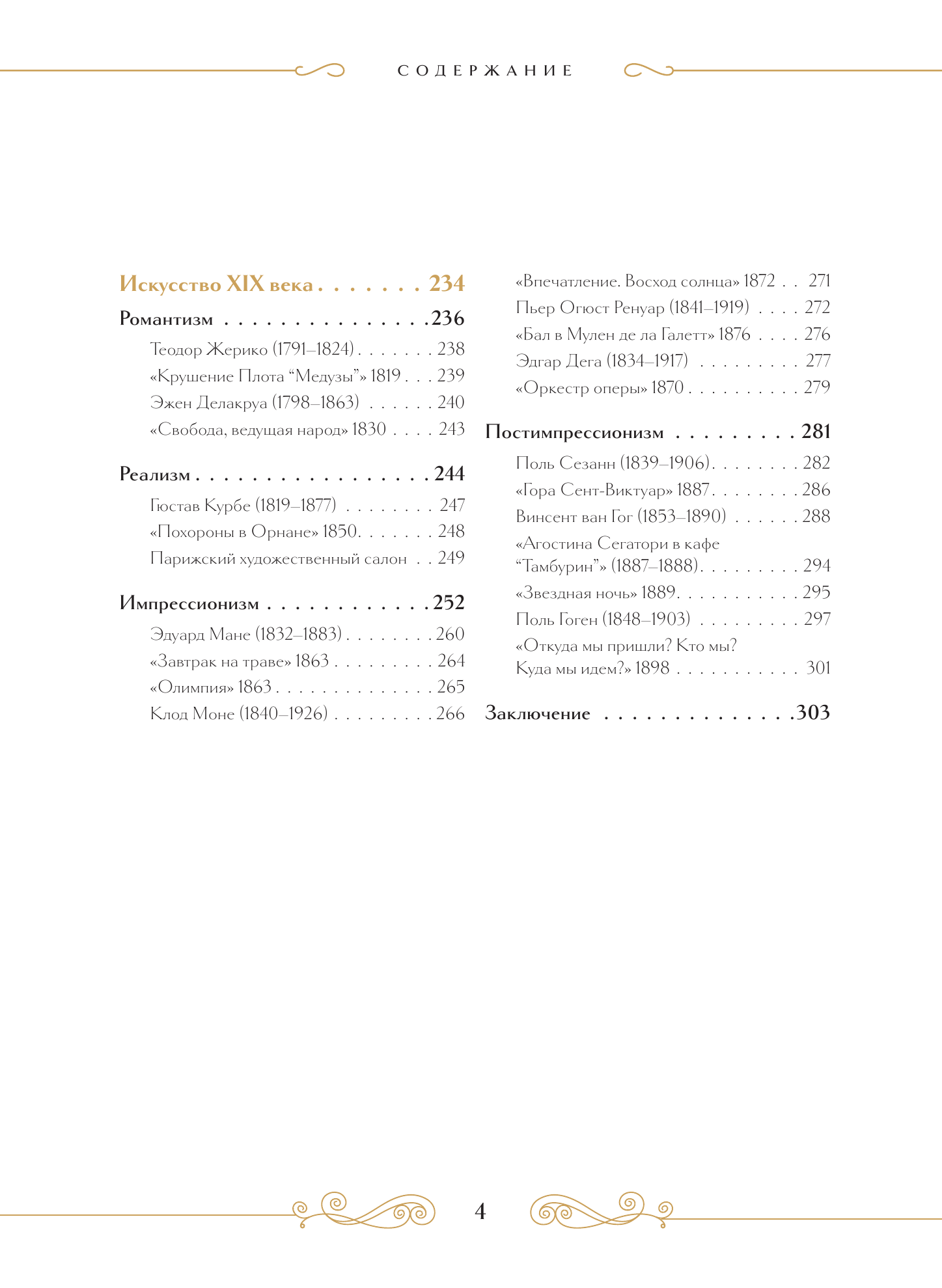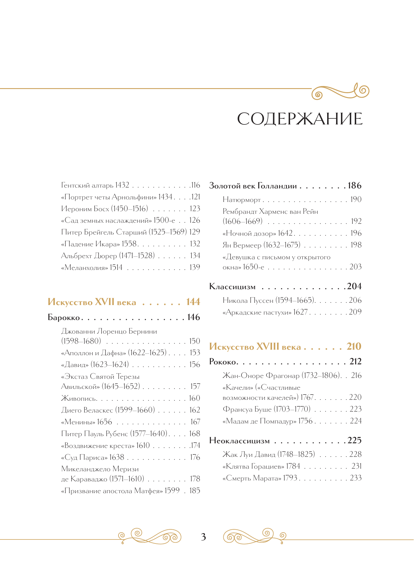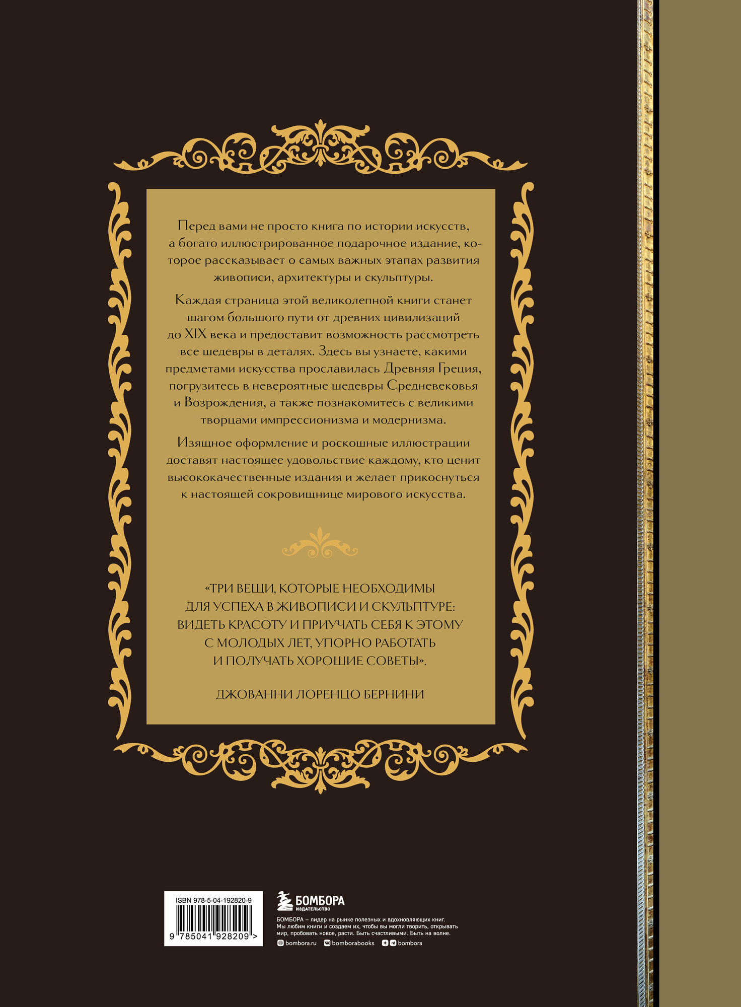 Это подарочное издание расскажет о настоящих шедеврах в истории искусства. На страницах этого богато иллюстрированного издания собраны самые значимые и важные предметы искусства, которые можно рассмотреть в деталях и узнать об их истории и смыслах. Автор доступно и увлекательно рассказывает о развитии скульптуры, архитектуры и живописи от Античности до XIX века и подробно разбирает каждый шедевр. Большой формат, великолепное оформление, мелованная бумага делают процесс знакомства с книгой настоящим эстетическим удовольствием, благодаря которому читатель сможет получить вдохновение и прикоснуться к сокровищнице мирового искусства.