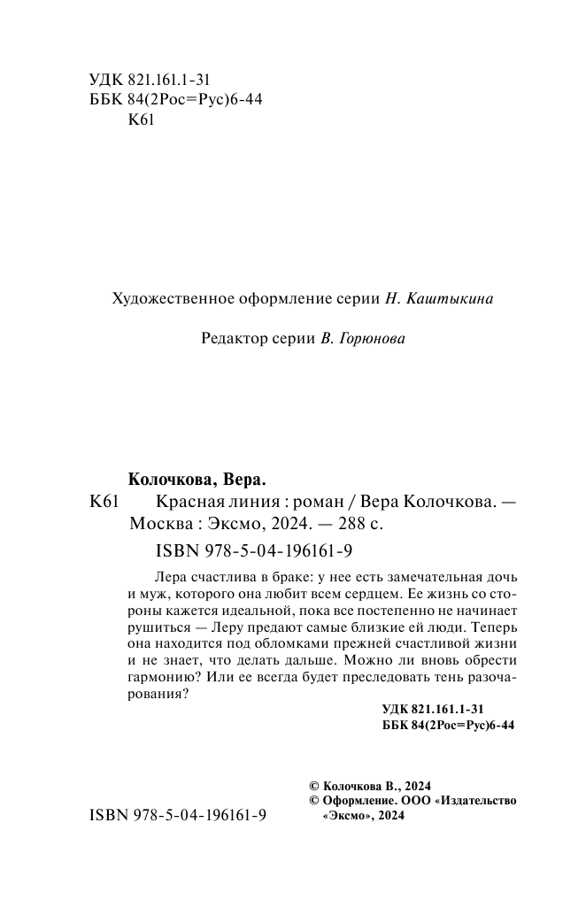 Книга: Красная линия (Колочкова Вера Александровна); Эксмо, Редакция 1, 2025