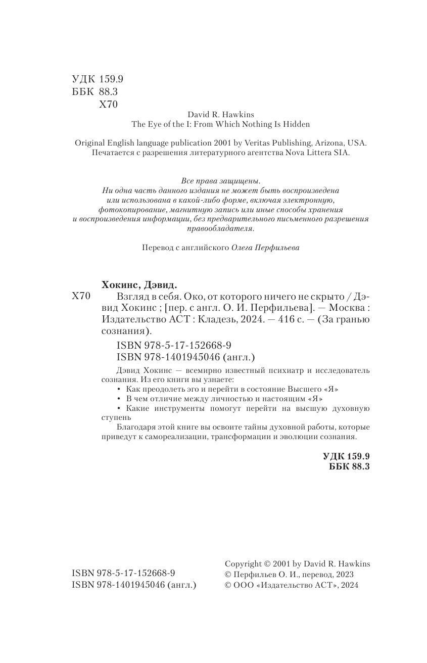 Взгляд в себя. Око от которого ничего не скрыто (Дэвид Р. Хокинс); ИЗДАТЕЛЬСТВО "АСТ", 2023