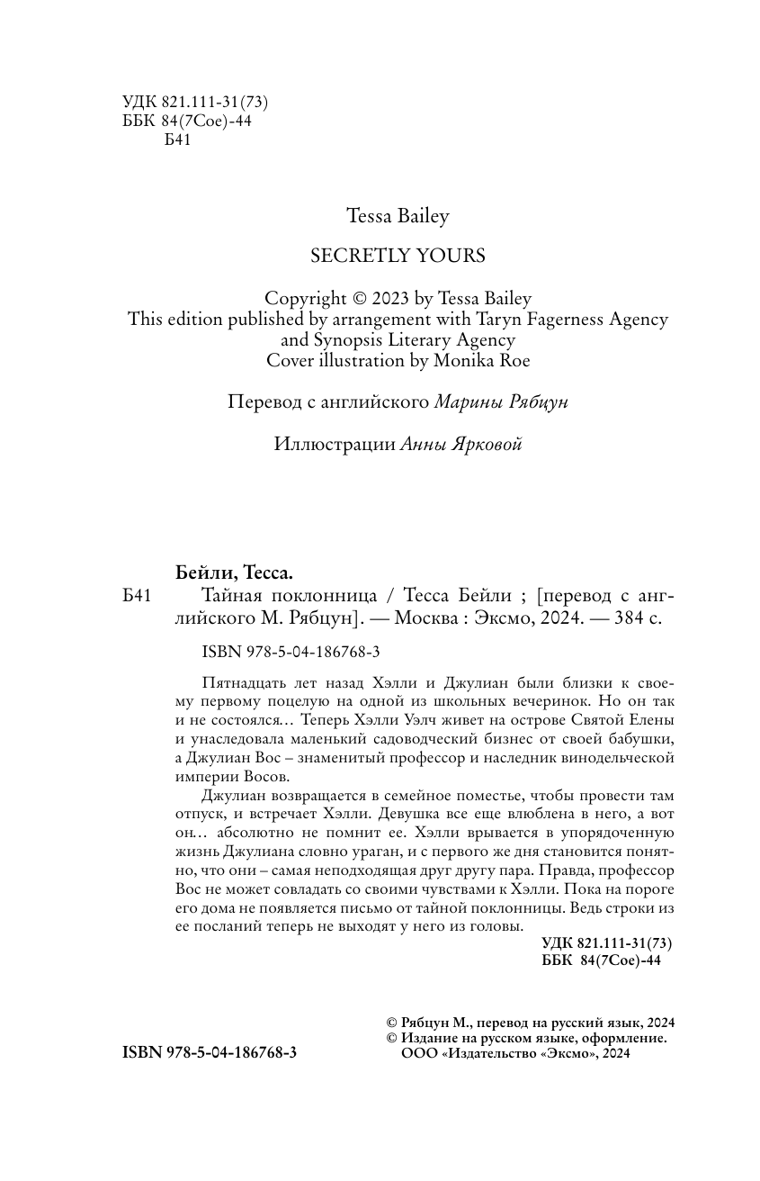 Книга: Тайная поклонница (Тесса Бейли); Эксмо, 2024