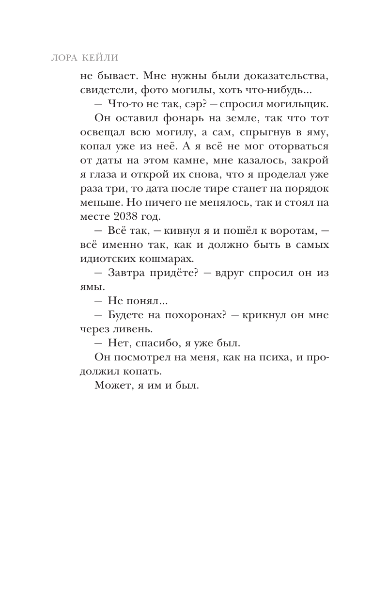 Репортер местной газеты Керри Мильтон узнает из теленовостей о гибели известного профессора. Вот только некролог на него он уже писал, и на похоронах тоже был… двадцать лет назад. В поисках его надгробия журналист отправляется на то самое кладбище, но вместо старой могилы находит новую на том же месте.