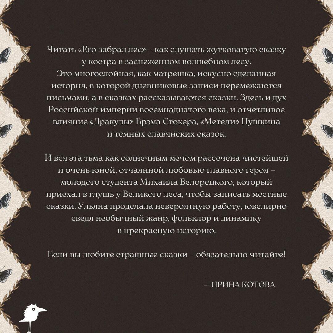 «Его забрал лес» — атмосферная история в записках, повествующая не только о нечистой силе Золотых земель, но и о влюбленном идейном юноше, Михаиле Белорецком.