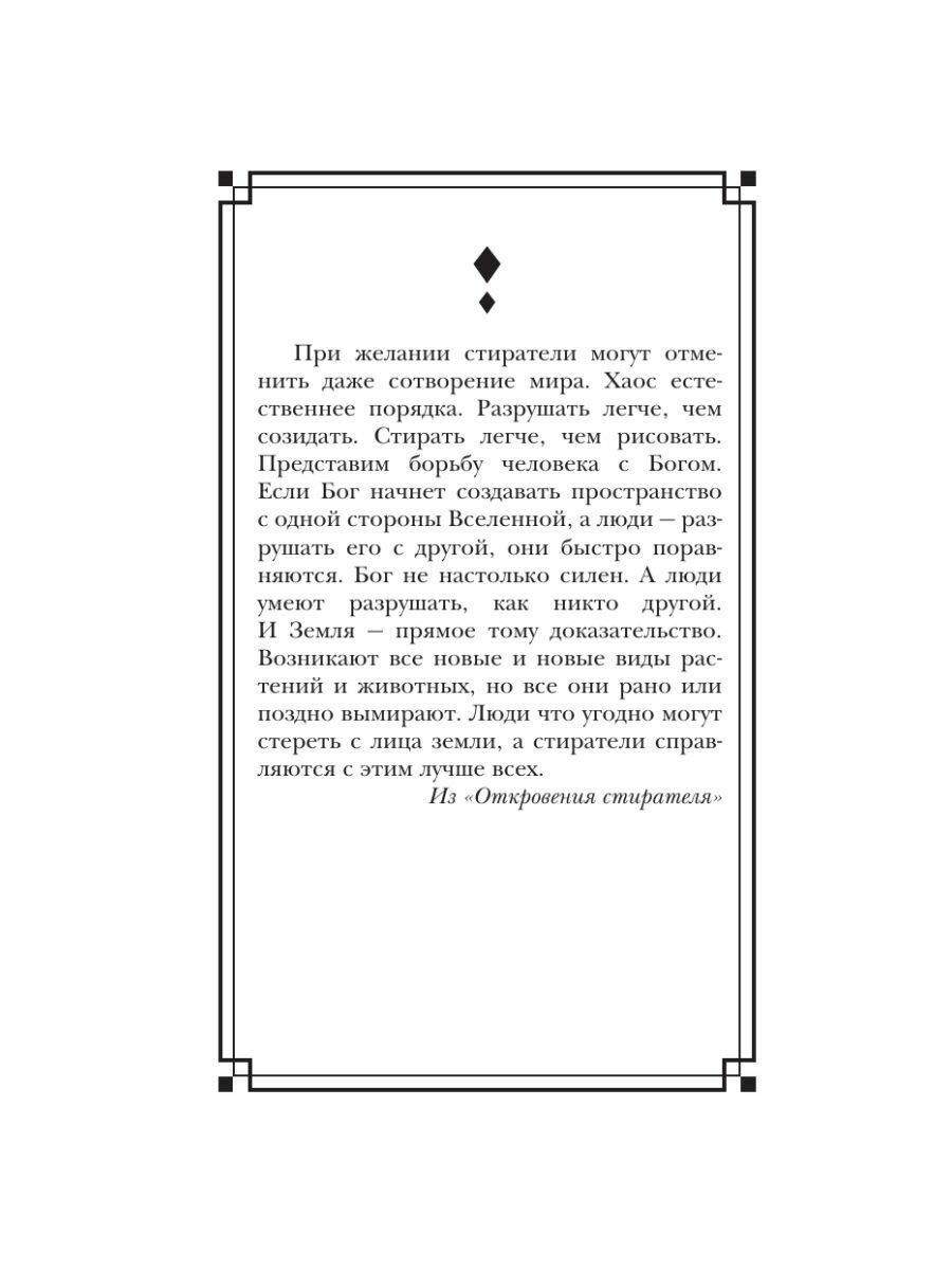 В наши дни уже мало кто в такое верит — и уж точно не следователь О Чэдо, ведущий дело об исчезновении девушки Со Хаюн. Опытный полицейский знает, что "стирателями" прикидываются обыкновенные шарлатаны, желающие набить себе цену. Разве под силу им по-настоящему "стереть" человека из мира? Да и кому нужны эти детские сказки, если Кан Чхиу, молодой человек, с которым Со Хаюн рассталась за полгода до своего исчезновения, явно увиливает от ответов. Конечно, он популярный писатель и умеет красиво говорить, только что-то не очень он расстроен ее исчезновением.