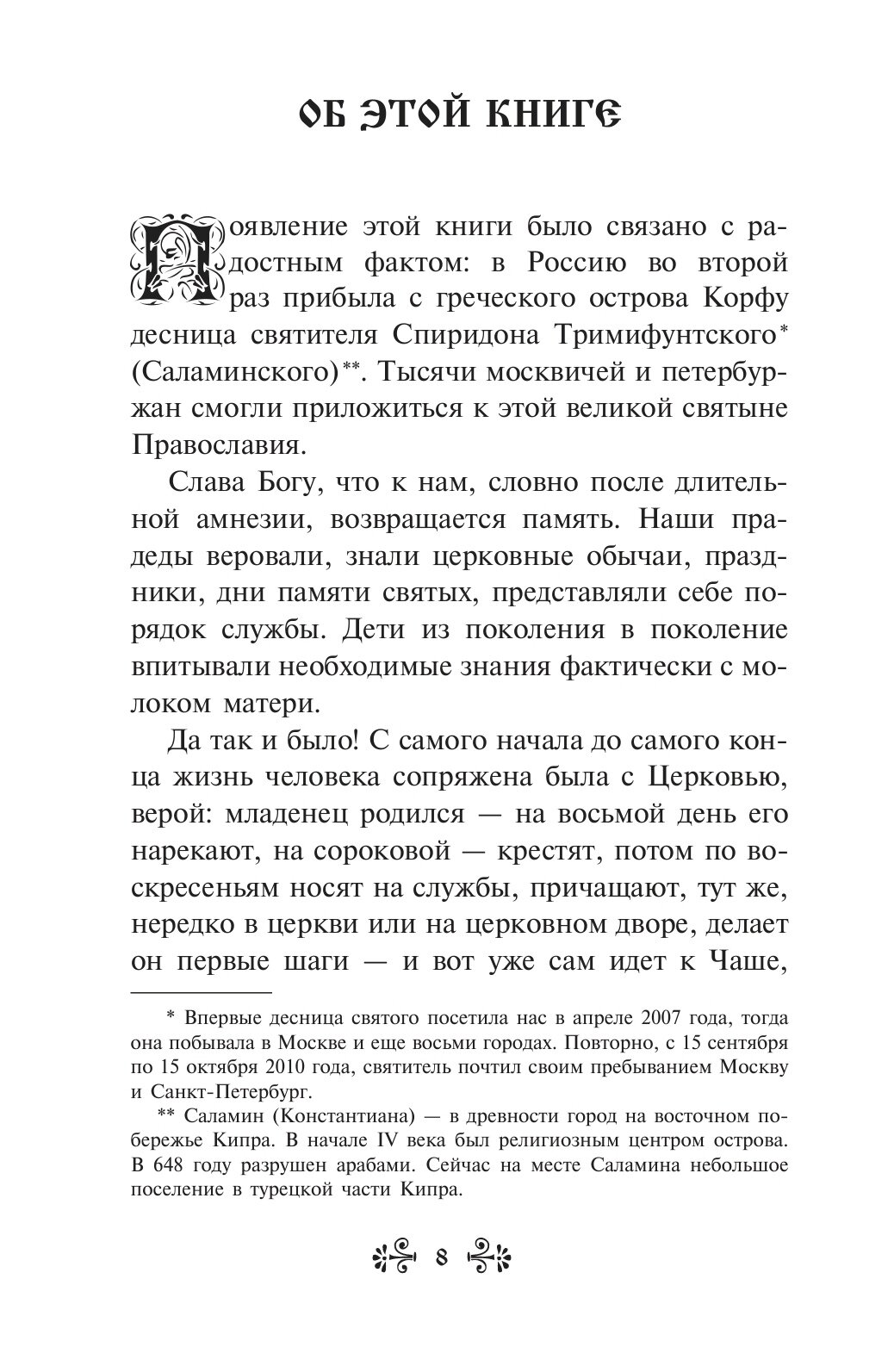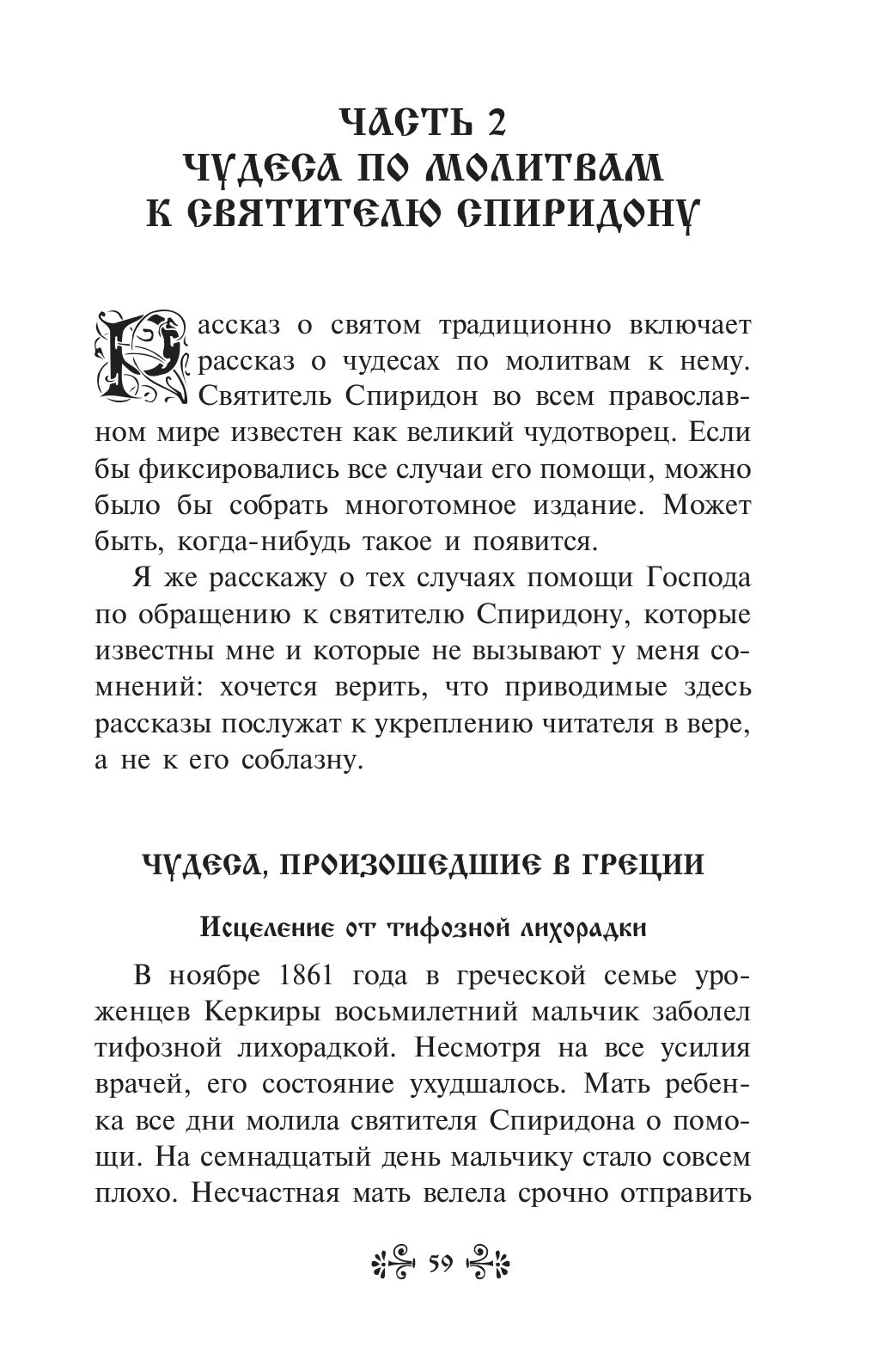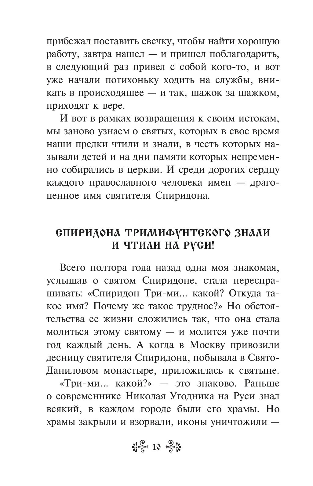 Книга рассказывает о жизни, прижизненных и посмертных чудесах одного из самых почитаемых в православии святых - святителя Спиридона Тримифунтского, мощи которого почивают на греческом острове Корфу. Современник святителя Николая Мирликийского, именно святитель Спиридон на первом Никейском соборе, не мудрствуя, показал единство и неделимость Троицы. На Руси всегда знали святого Спиридона, просили его о помощи при строительстве, ремонтах, в денежных затруднениях, в болезнях и унынии. В книге вы найдете акафист святому, перечень храмов, освященных во имя него, и советы тем, кто собирается поехать в паломничество на Корфу.