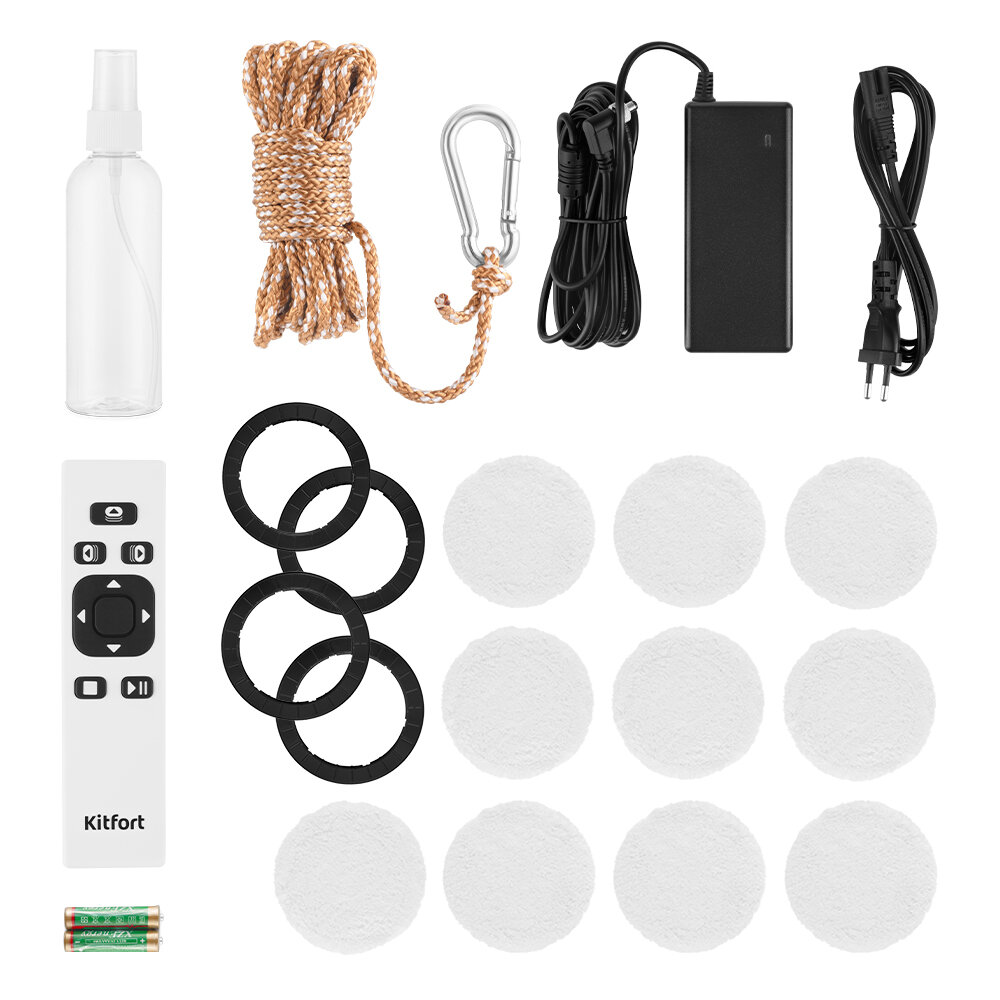 | Комплектация | 10 тряпок, 4 держателя тряпки, Адаптер питания, Батарейки, Бутылка-распылитель, Пульт ДУ, Страховочный трос |