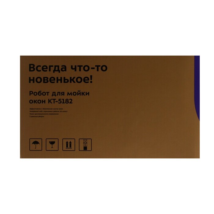 Чисто будет быстро! Робот предназначен для мытья стеклянных, кафельных и зеркальных поверхностей. К двум держателям тряпок на дне робота крепятся чистящие тряпки. Прибор укомплектован страховочным тросом, поэтому вы можете использовать робот для высоких окнах. Одна кнопка для начала работы Управление роботом осуществляется при помощи пульта дистанционного управления. Вы можете дистанционно запустить уборку, поменять режим или остановить уборку. Кнопки навигации служат для управления роботом в ручном режиме. 3 режима работы Внутри робота установлен гироскоп, который позволяет контролировать углы поворотов робота. Таким образом, робот не отклоняется от запрограммированного маршрута. Робот оснащён 3 режимами уборки для более тщательной очистки поверхности. Безопасное использование Прибор укомплектован страховочным тросом, поэтому вы можете использовать робот для широких окон. На случай внезапного отключения электричества робот снабжён резервной системой питания, которая будет удерживать робота на окне около 20 минут. Всё нужное – в комплекте! Перед уборкой вы можете распылить на стекло обычную чистящую жидкость для стёкол или воду, используя бутылочку с распылителем. В комплекте идут 4 держателя тряпки, 10 тряпок, 2 батарейки ААА, страховочный трос, пульт ДС и блок со шнуром питания. Удобная световая индикация Во время зарядки индикатор зарядки будет гореть оранжевым светом. Индикатор работы горит синим светом – значит робот успешно прикрепился к поверхности. Когда зарядка завершится, индикатор питания будет гореть зелёным светом.